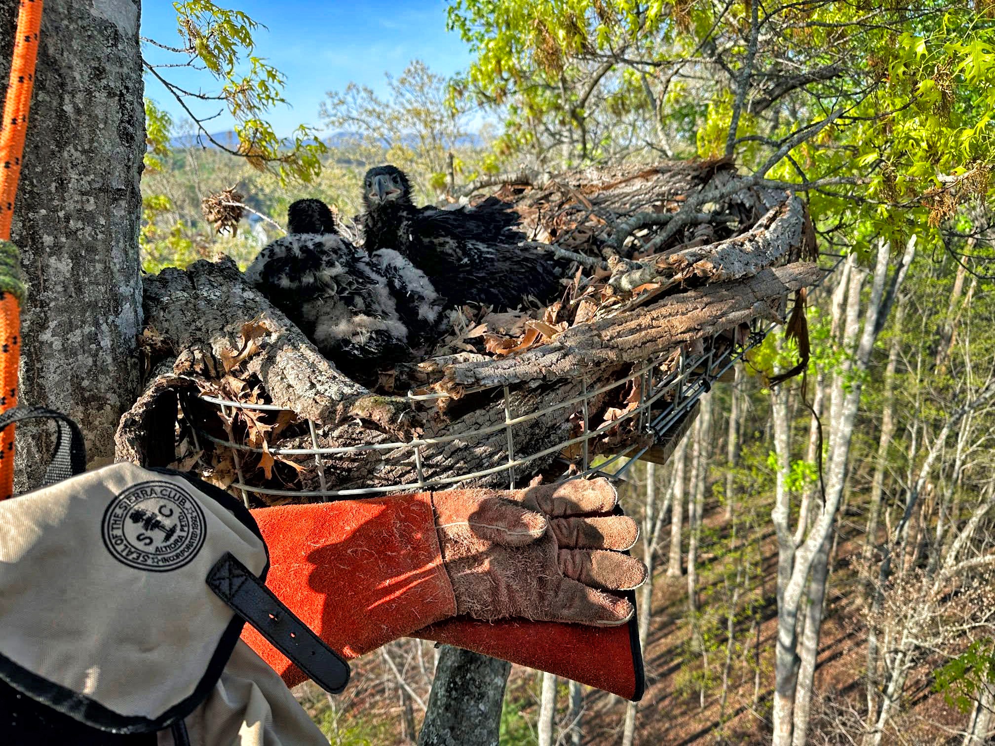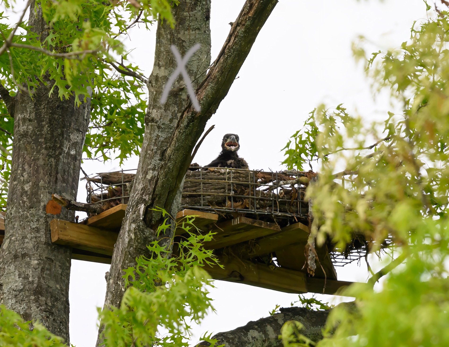 Liberty & Justice like the newly built rescue nest, but they decided to rebuild at their old nesting site (which is in the same tree). It's a good thing we didn't install a camera directly over the new nest before this nesting season. But if we raise funds for a camera, the hope is it can be installed to view both nests—in the event they use either nest in the future.