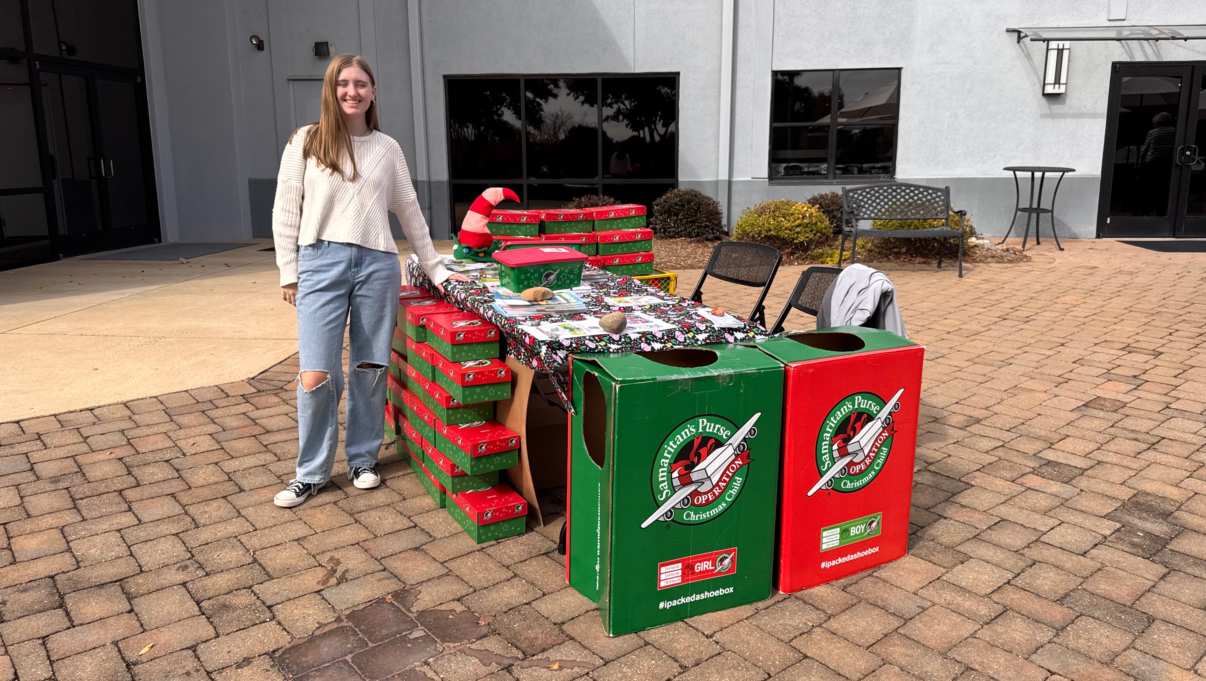 She also serves year-round with Operation Christmas Child, where she has helped coordinate donation drop-offs for years and now serves as a Student Relations Ambassador.