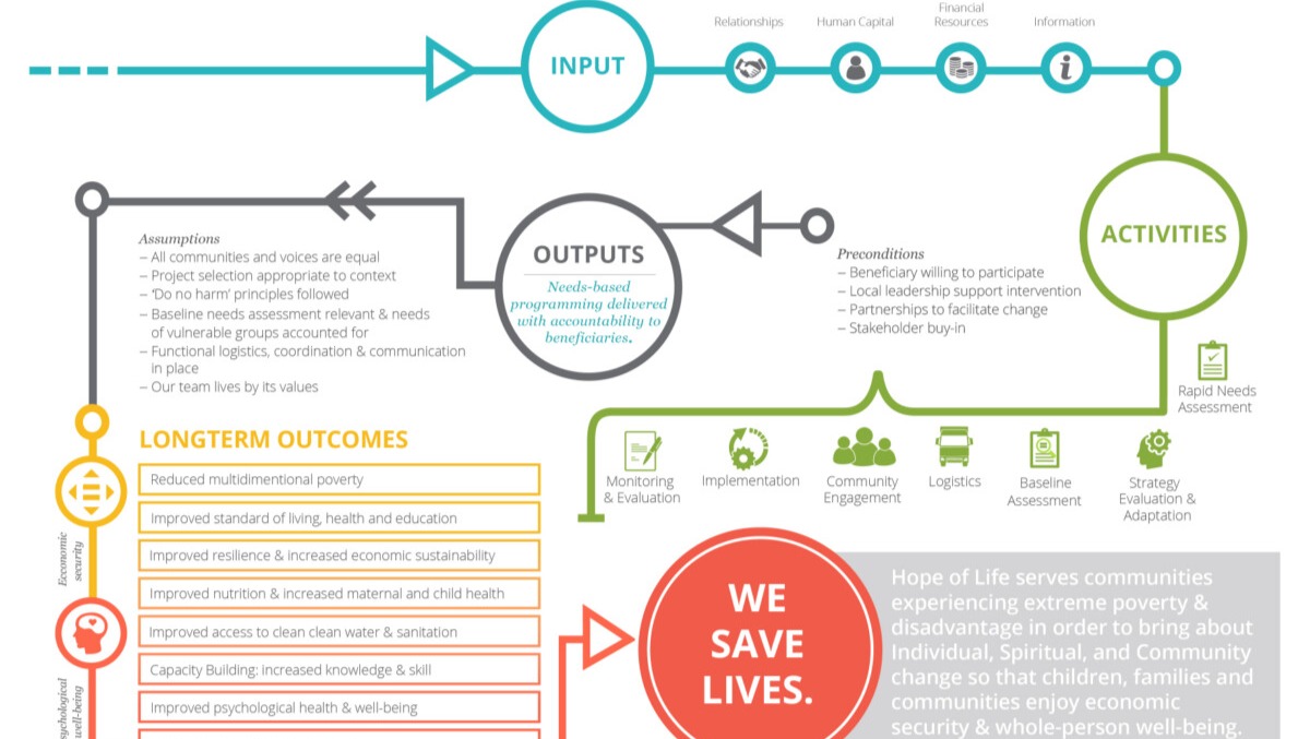 Hope of Life is a faith based organization with programs developed to meet the needs of marginalized people in Guatemala. They have a hospital that helps impoverished children from the mountain communities. Among other things, they also have an orphanage and foster home, a senior home and two programs for children with disabilities. This is their theory of change philosophy on how they approach their communities.
