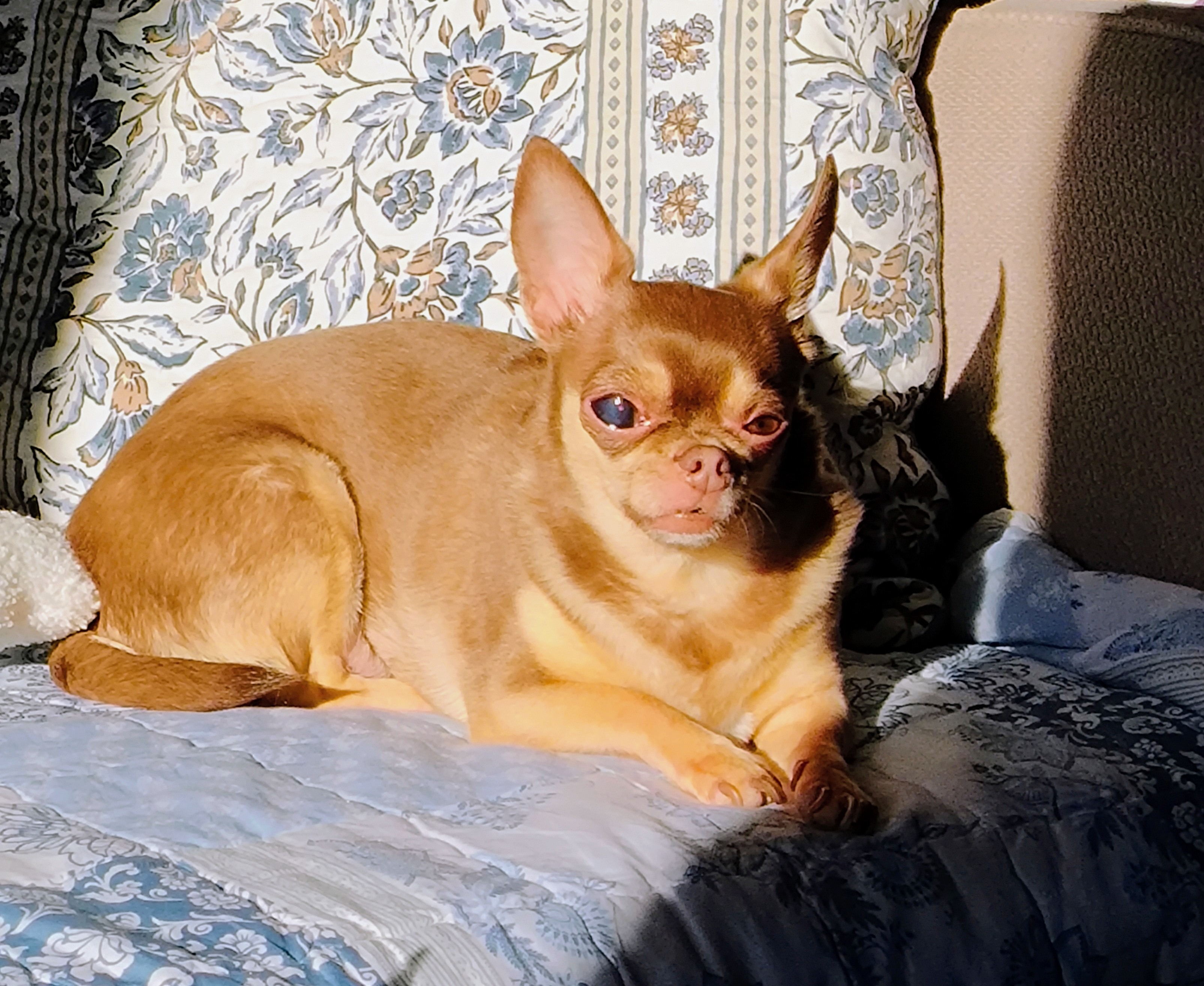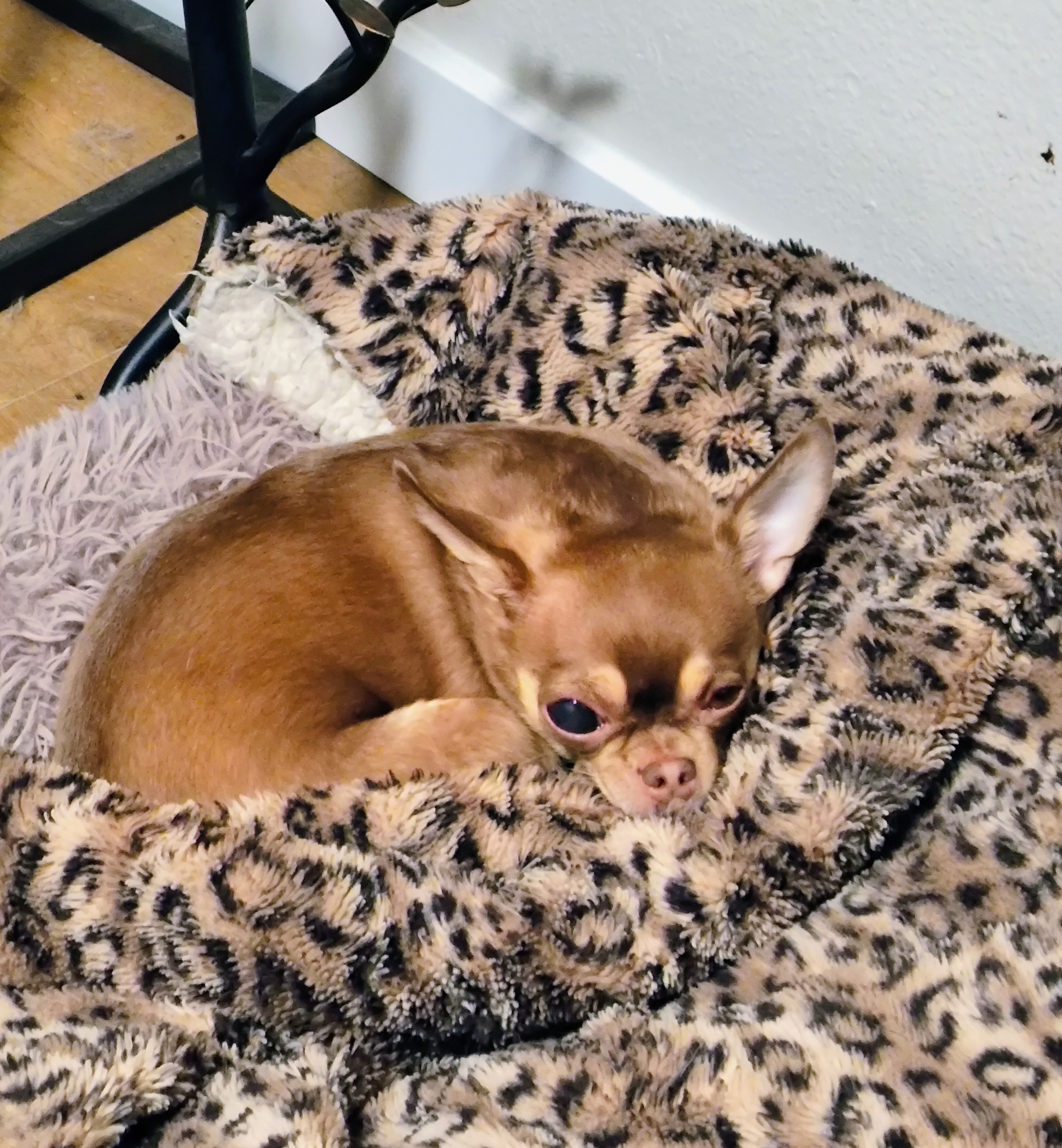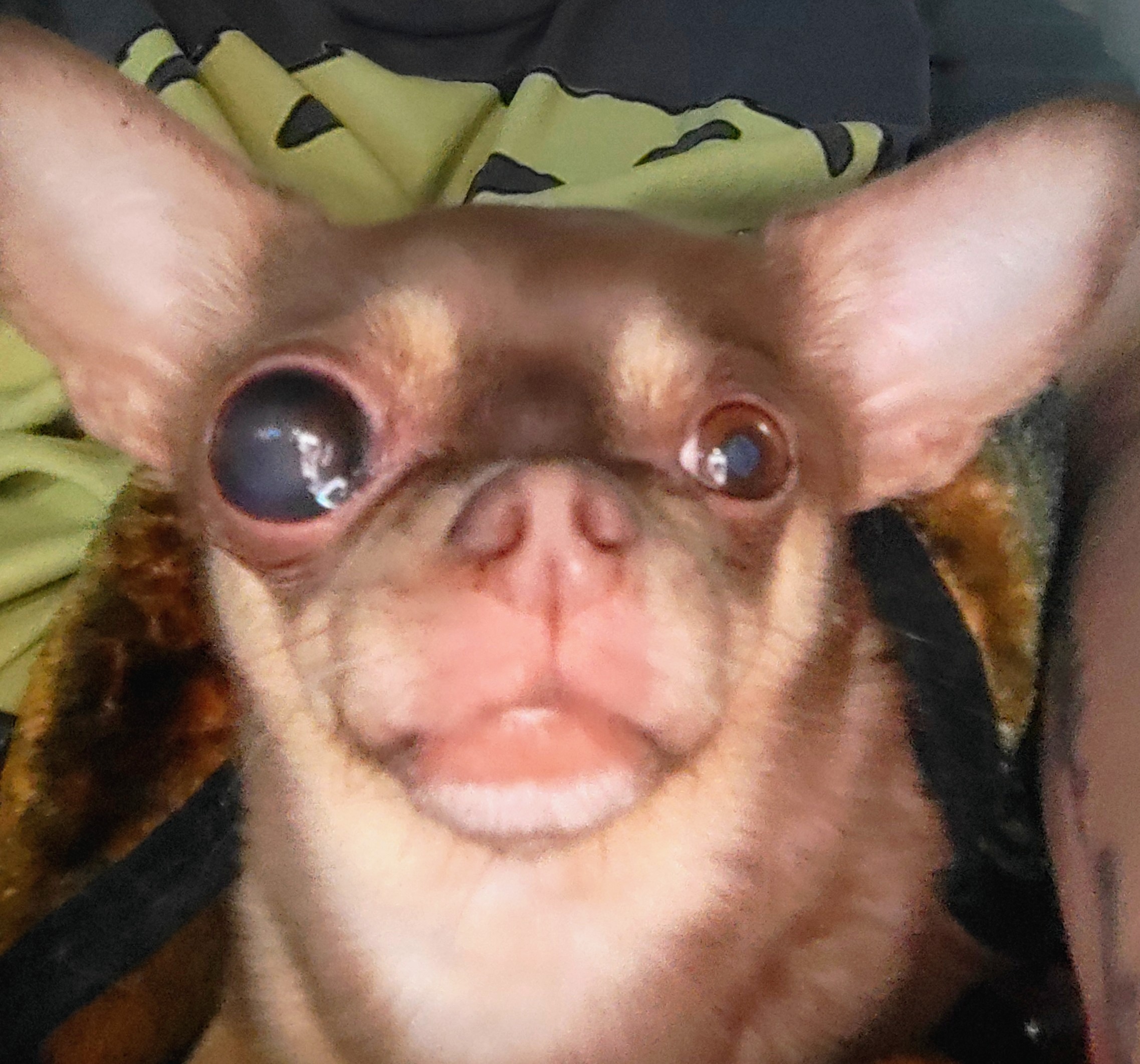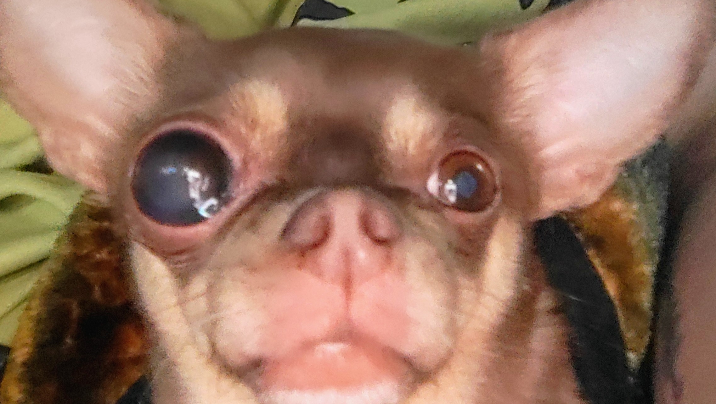 Hello, I am Kristina. I am the momma to my beautiful Chihuahua, Lolly. She just turned 6. This past June, she developed cataracts in her right eye. Just recently, it got all dark and hazy and started to swell. I took her to the vet, and he sent her to the emergency animal eye clinic. The doctor stated that she has melanoma OD with severe buphthalmia and blindness. She needs to have her eye removed.