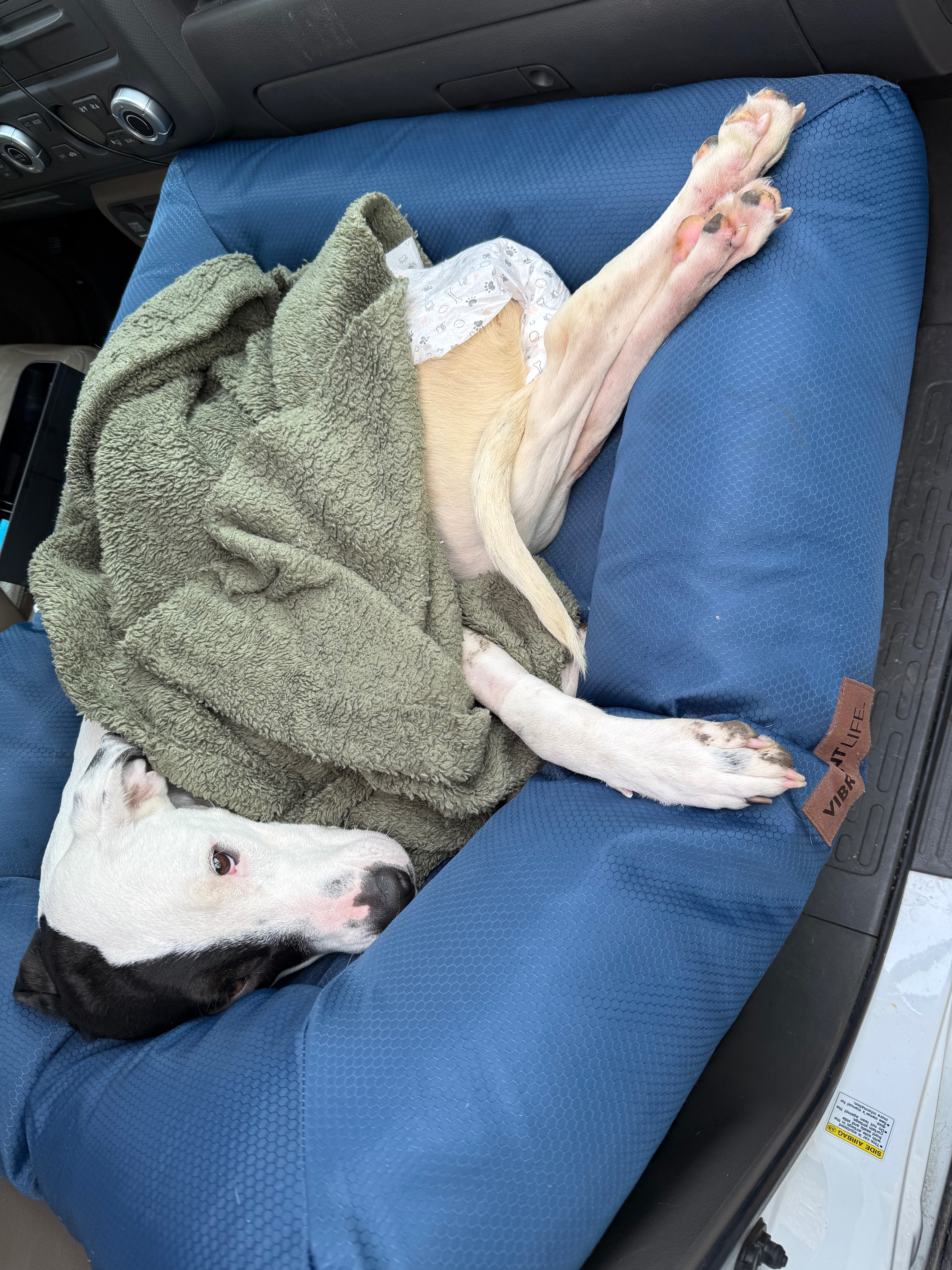 Defeated, heartbroken, and despite the surgeon’s recommendation of euthanasia, I brought her home. She has another 4 weeks of rest so her body can continue to heal around the injury, and after that, she will have her wheelchair plus intensive physical therapy. She has 0 use of her backend and will need to be cared for in every way possible for the rest of her life, including manual extraction of her urine and feces several times a day by her caregiver (me) . Anyways! I love her and I've actually done this before with a 2-legged senior rescue dog I adopted and cared for till the end from 2020-2024.