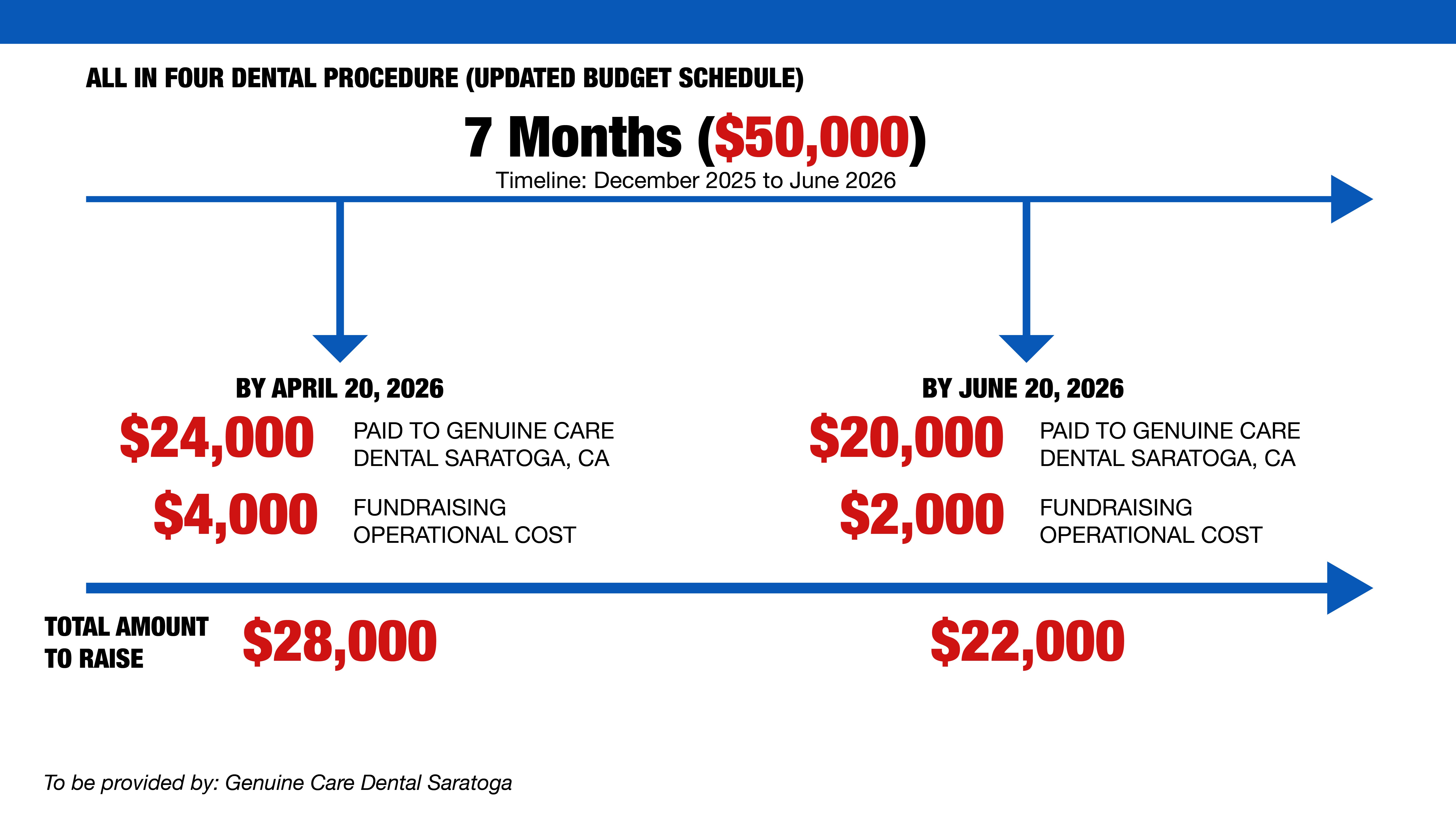 On October 20, 2025, I successfully completed the first (of three) major phase of treatment—a four-hour bone graft (sinus augmentation) procedure at Genuine Care Dental Clinic in Saratoga, California. This procedure was made possible because the $6,500 required for this phase was fully funded through the generous support of several dedicated donors.