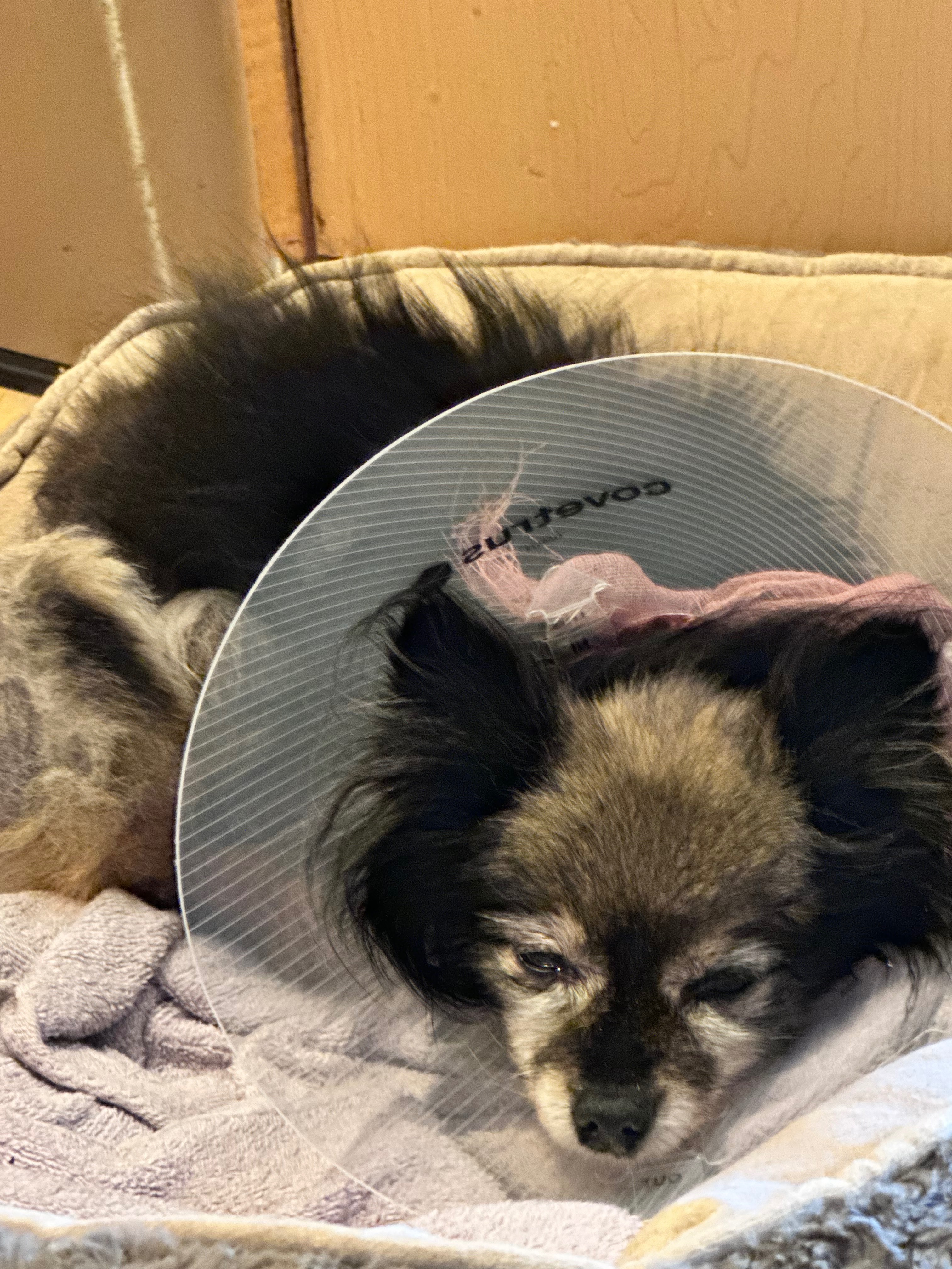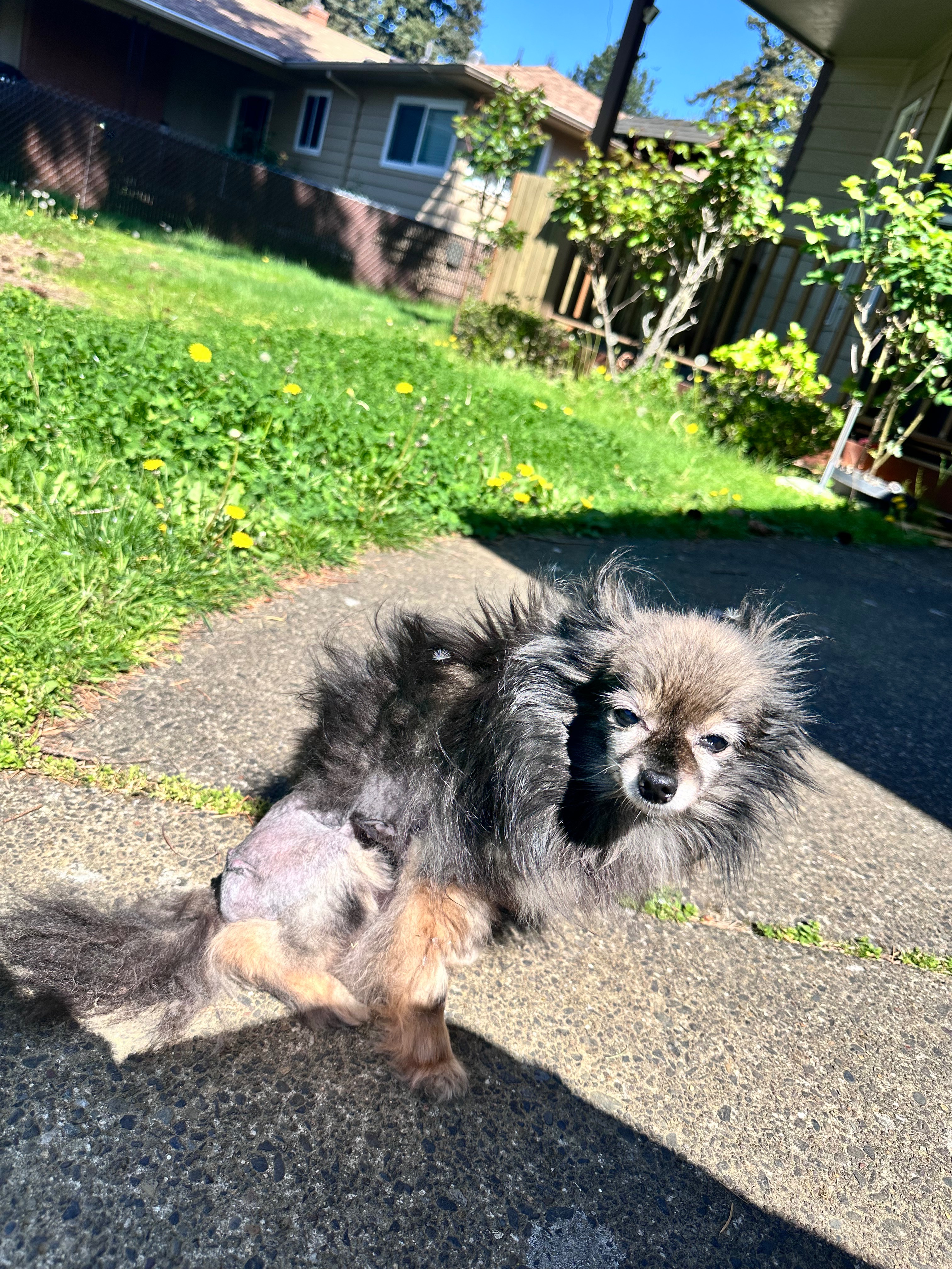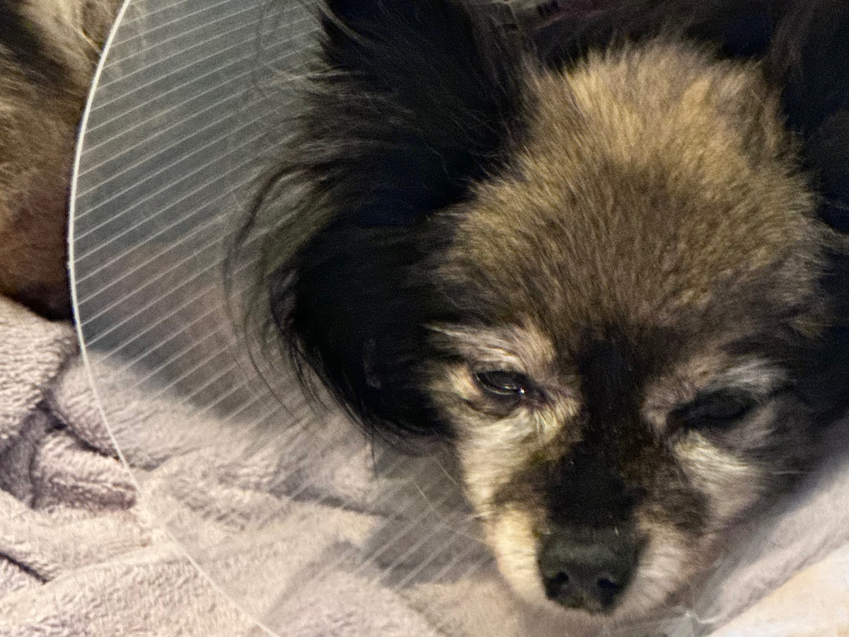 Lulu is my partner's 13-year-old Pomeranian. She has been in his family since she was a puppy and was recently in an accident. We had noticed she was not moving or eating. She would stand at the door crying for hours. She was not putting any weight on her back right leg, and it was scrunched up at an angle. We immediately booked her for an urgent care appointment on the weekend and she was seen this Monday. The veterinarians at Oregon Humane Society instantly fell in love with her. They let us know she had a severe dislocation and recommended an amputation of the whole leg, or a Femoral Head Ostectomy (FHO). Ultimately, we opted for the FHO as we wanted her to prance around like she has always done and did not think it would be in her best interest to lose her whole leg.