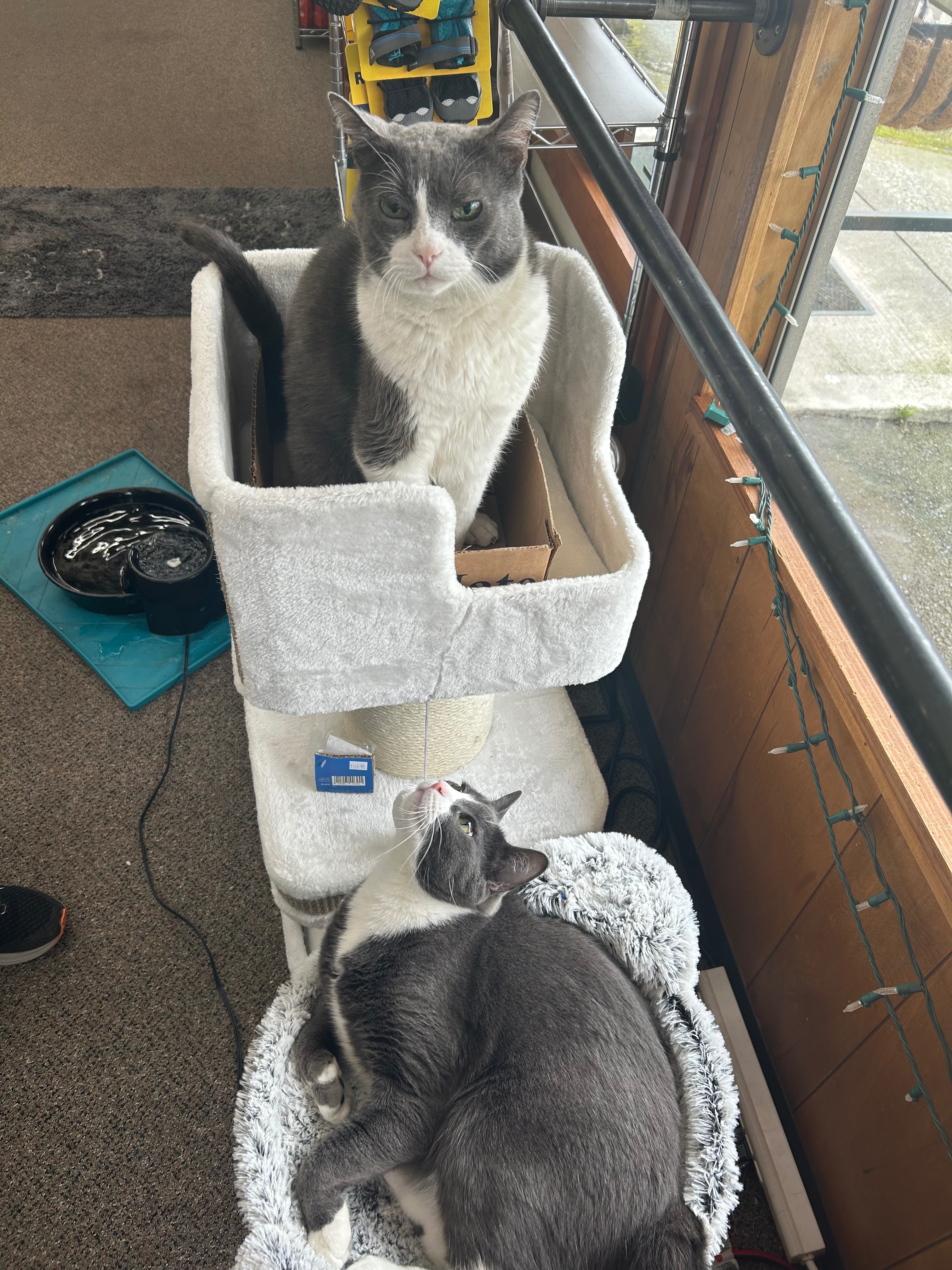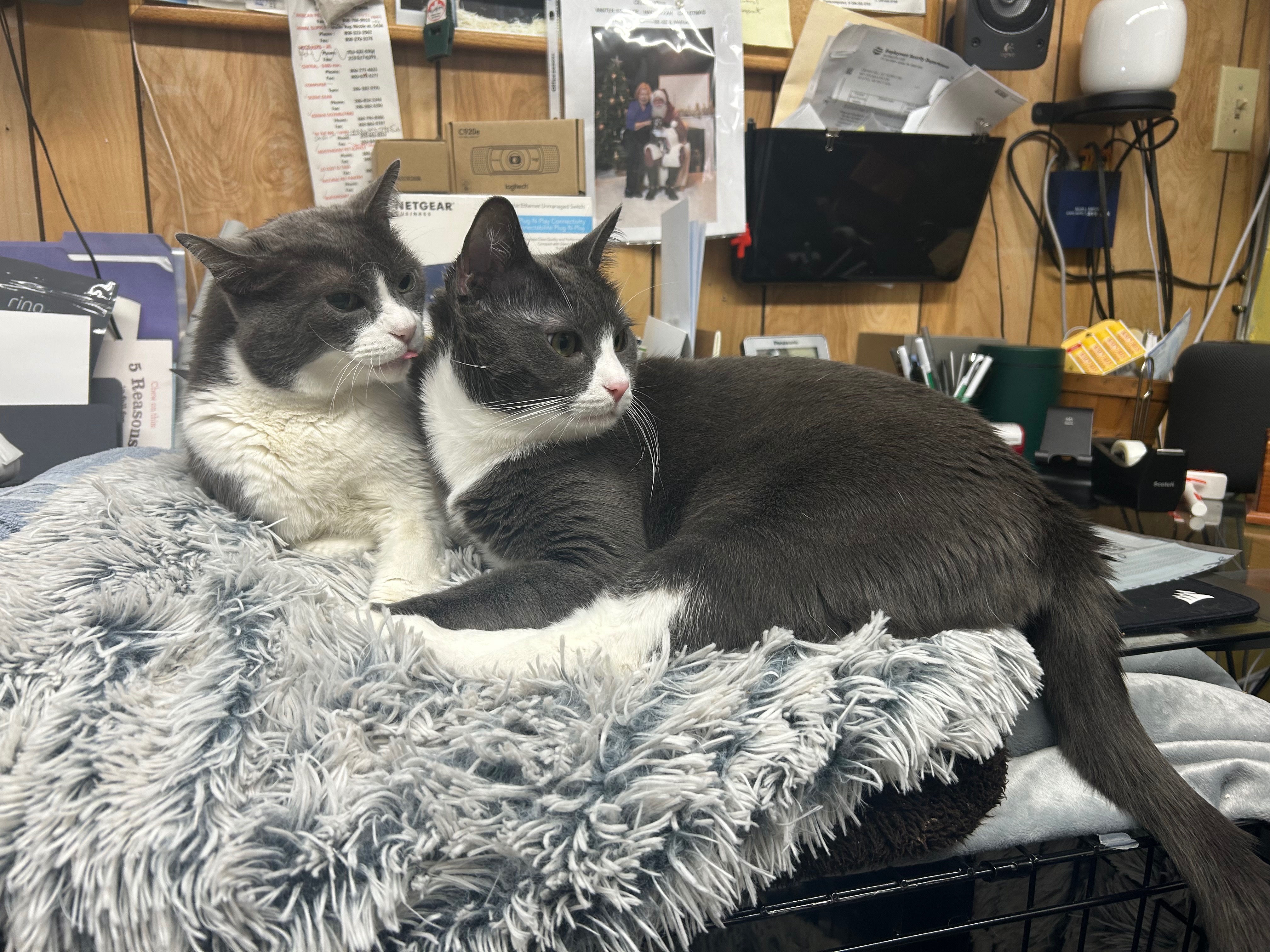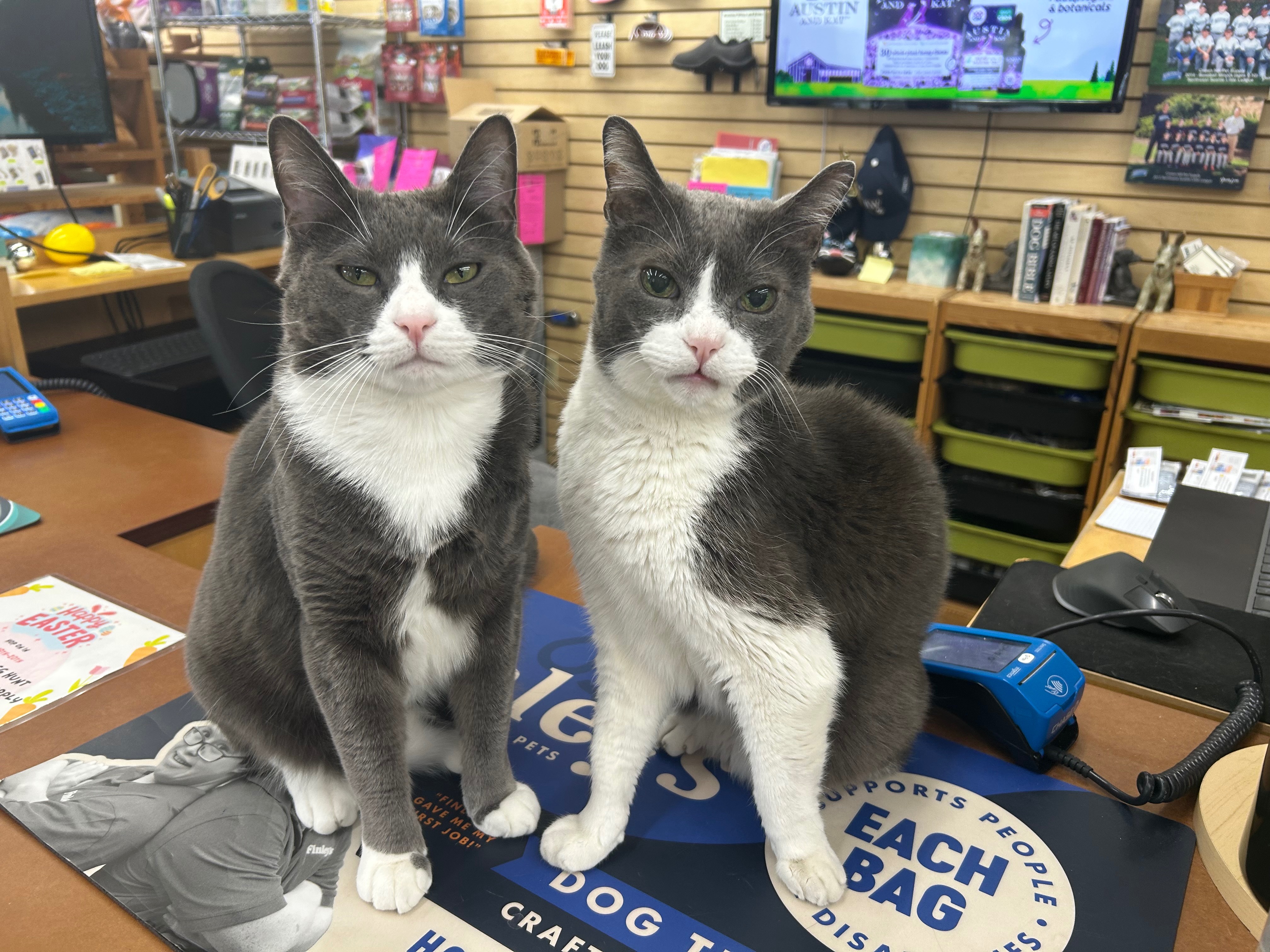 With the closing of Crown Hill Pet Supply our beloved store cats Mac and Cheese are going to a new home. They are a bonded pair and we want to see them to stay together with someone they know well, and are comfortable with. As an employee I have volunteered to take on this dynamic duo so they could stay within the Crown Hill Pet family. Unfortunately with the store closing I will be newly unemployed. This fundraiser will go towards a wellness plan for each cat’s veterinary care for the next year and anything extra will help to cover initial food cost while I look for a new job. Please consider donating to the cost of their care and keeping this little family together.