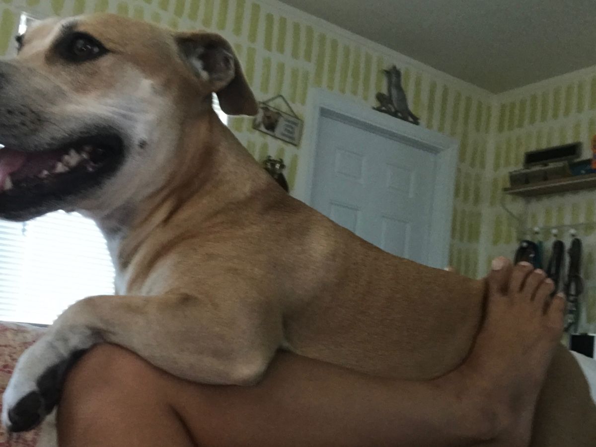 Russell and I found Mac as a stray dog on our street when he was 12 weeks old. He was covered in fleas and malnourished. We had hoped to get a second dog one day, and Mac magically walked right up to our doorstep. Of course, Tabby wasn't thrilled but he made sure to show her all the love he has to give. We are absolutely in love with our dogs and will do anything for them.