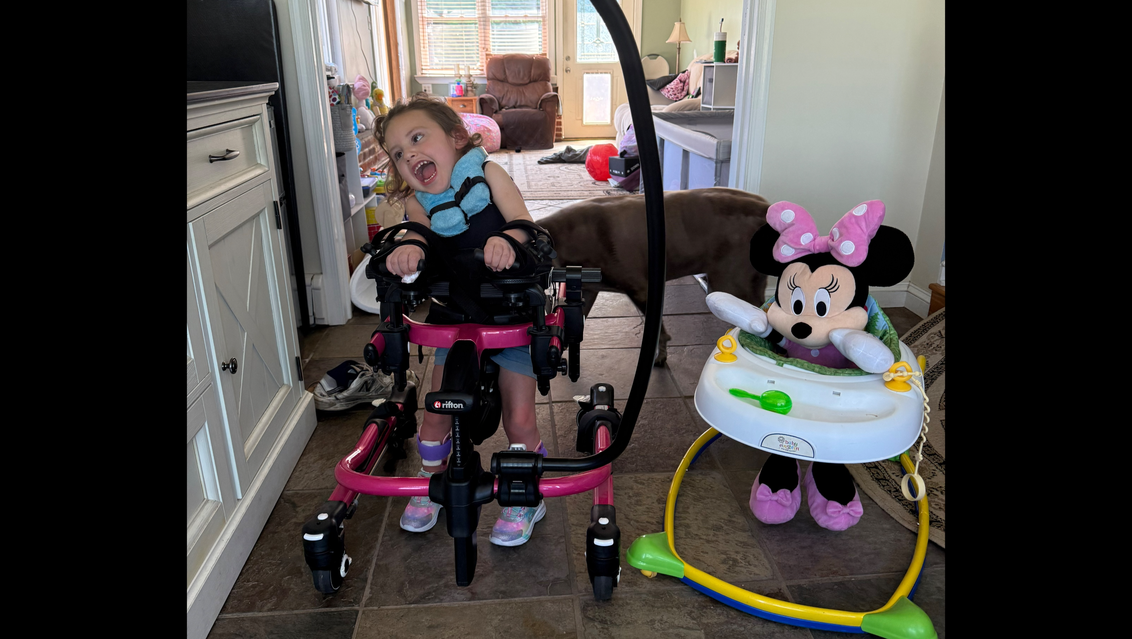 Just the other day, Lainey was trying to push Mallory in her gait trainer — or maybe she was trying to hitch a ride herself… we’re not entirely sure! Either way, the girls already share the sweetest bond, full of joy, curiosity, and encouragement.