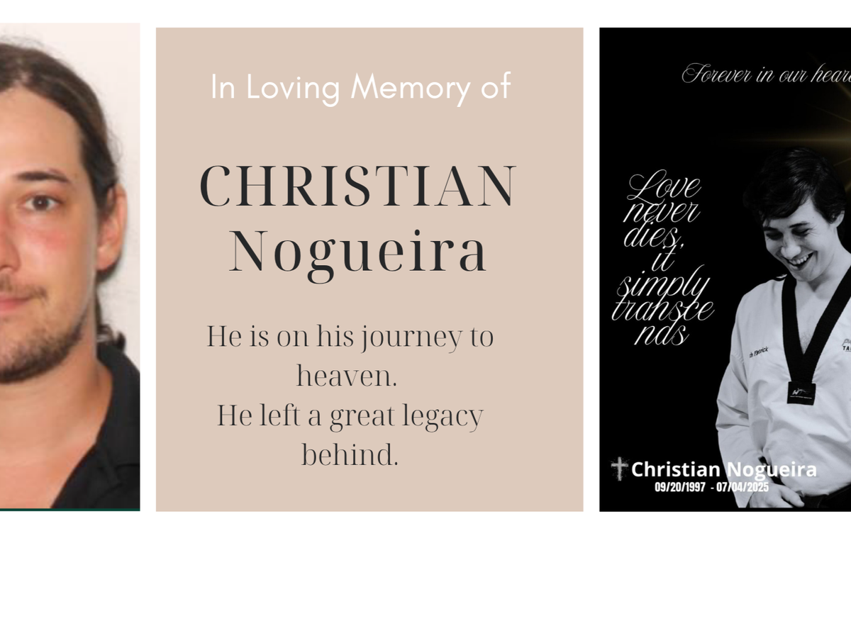 It is with deep sadness that we share the sudden passing of Christian Nogueira, beloved son of our taekwondo coach, Marco Nogueira. At just 27, Christian’s life was tragically cut short. For years, Coach Marco has devoted himself to teaching and mentoring countless children and adults in our community, shaping not only their taekwondo skills but their character and confidence.