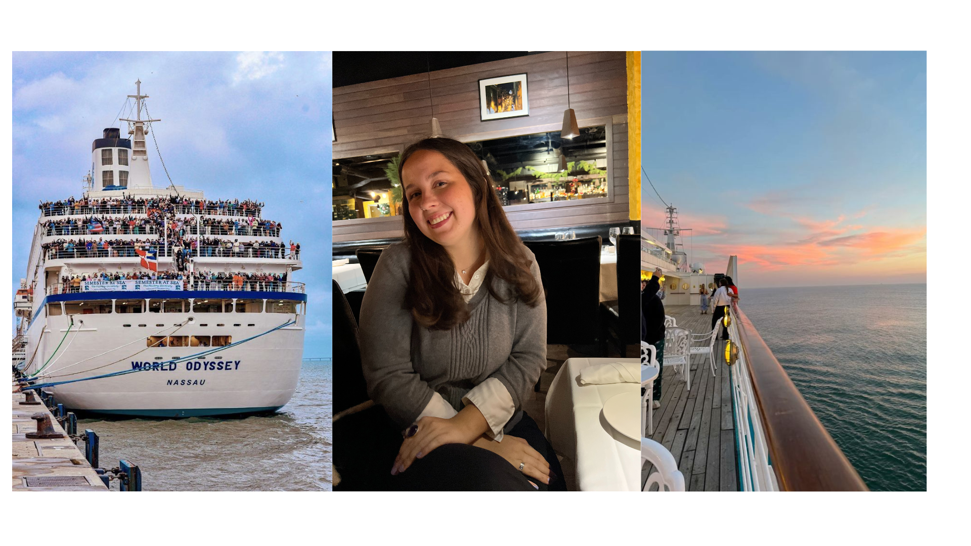 Hi! I'm Marie Danos, and I'm working to fulfill my lifelong dream of studying abroad with Semester at Sea! I'll be setting sail in Spring 2027, once I have graduated from UNCA. I'll be traveling to 11 countries and studying on a ship for 4 months! I will be visiting Thailand, Vietnam, Indonesia, Singapore, India, Kenya, South Africa, Ghana, Morocco, Scotland, and Germany. This program would expose me to societies that most students have only read about in books. Exposure to new cultures and people of the world will give new perspectives from real life experiences. All of my travel expenses such as required vaccinations, international data plans, flights, travel visas, misc. transportation, and all in country travel I will have to pay for myself, and I'd greatly appreciate your help! Every donation, no matter how small, helps to make me one step closer to setting sail on this educational journey. Peace & love, Marie.