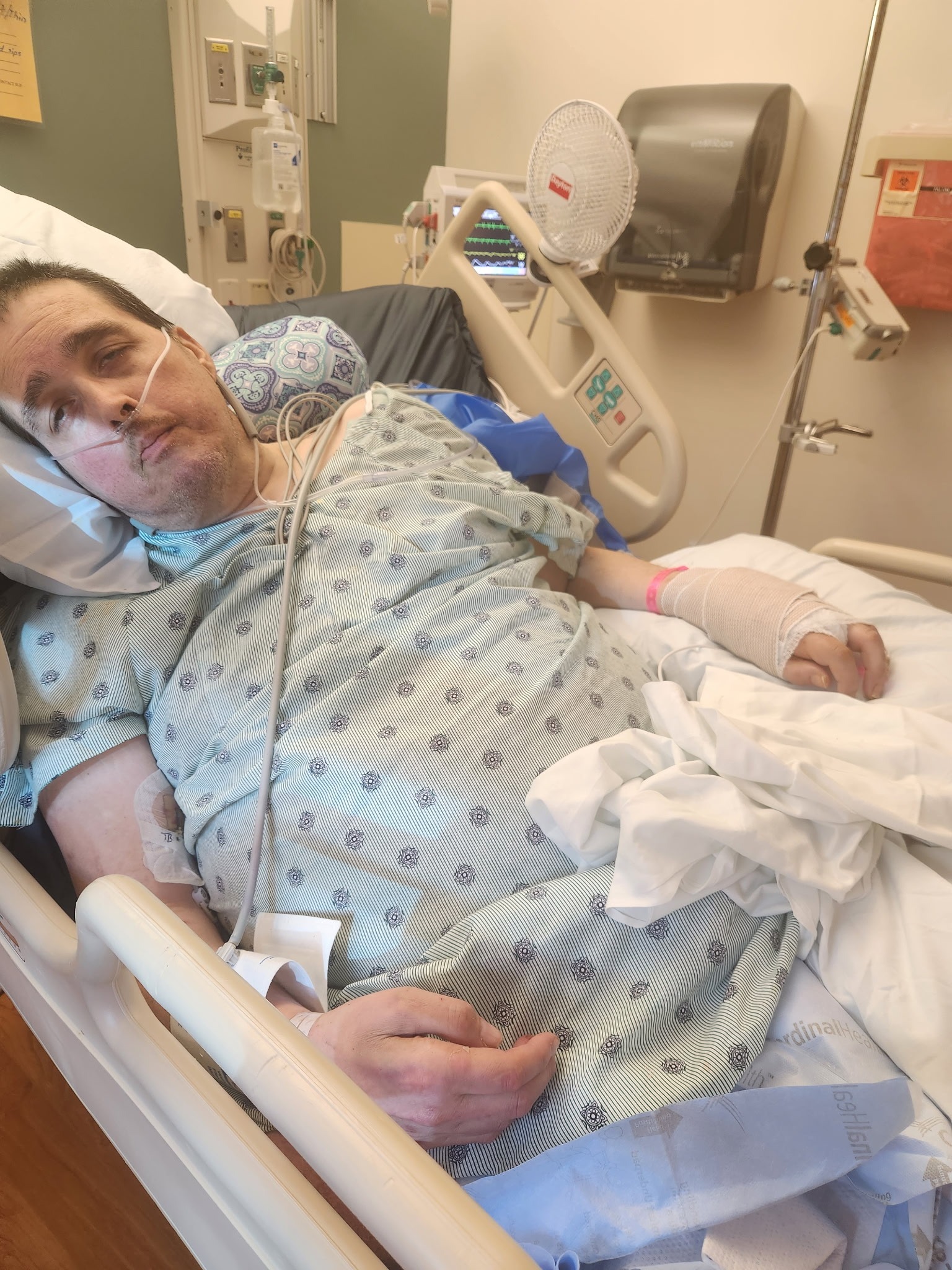 Mark, a United States Army Veteran, underwent surgery to remove a severe infection from his left hand. While the surgery was successful, the following morning, he suffered a devastating stroke. Though Mark is slowly regaining his strength, his mobility is currently limited to his right arm, and his recovery journey is ongoing.