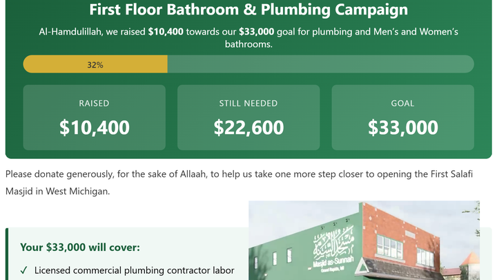 Our first-floor bathroom renovation is the last major phase before we can open our doors. This isn't just about sinks and pipes — Islamic worship requires a specific ritual cleansing called wudu (ablution) before every prayer. Our bathrooms need to include specialized ablution fixtures called WuduMates, ADA-compliant installations, a drinking fountain, and all of the permitting and inspections required to meet commercial building codes and Michigan's barrier-free accessibility standards.