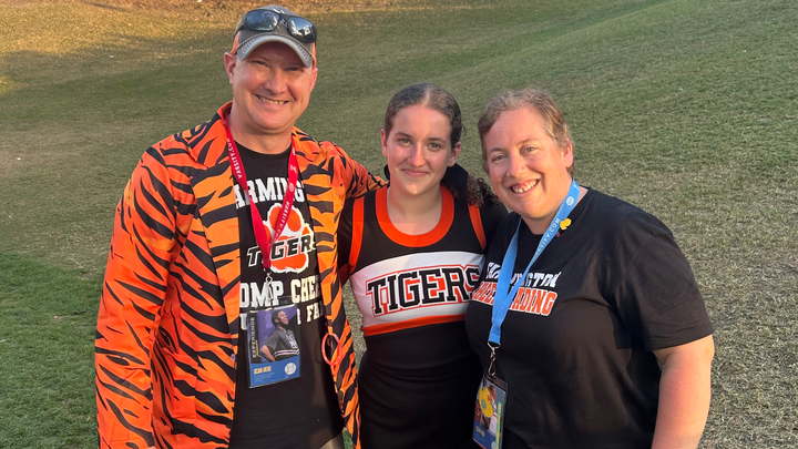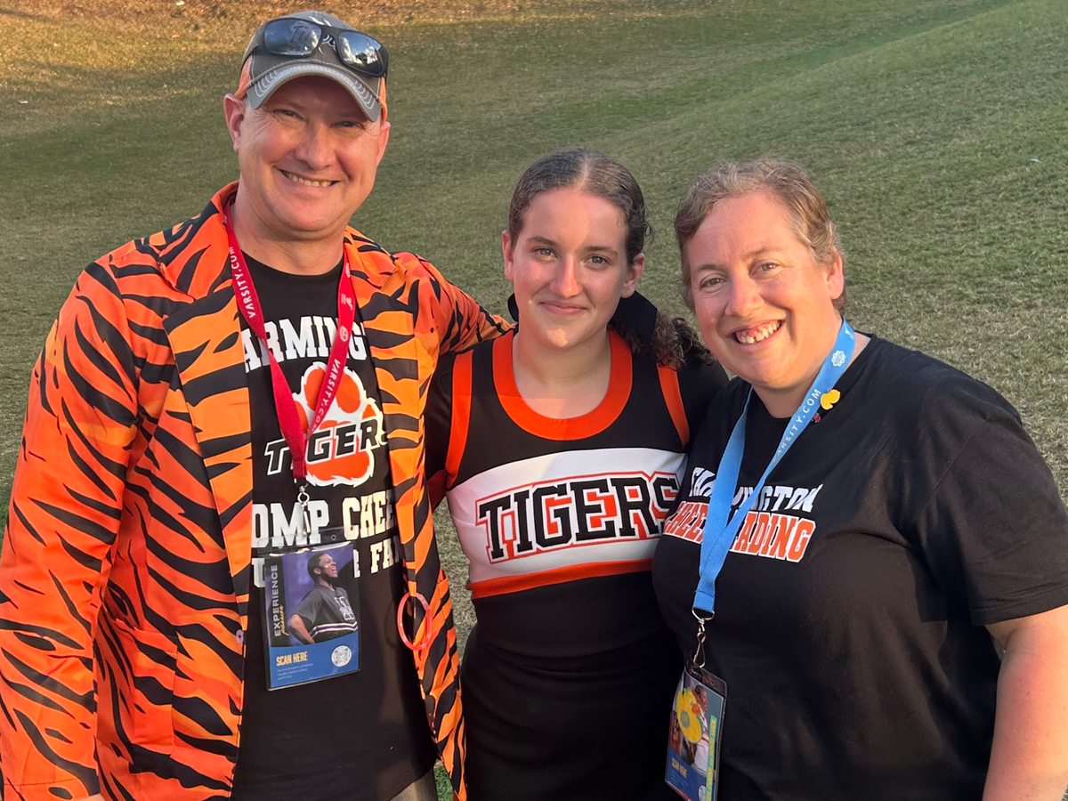 If you’ve ever been to a Farmington cheer competition, you’ve probably seen (and heard!) Matt Cossitt — the proud dad in the tiger-striped jacket, cheering louder than anyone in the stands. He’s the kind of dad who radiates joy, energy, and love for his family — a man who gives everything to support his community, his team, and his girls.