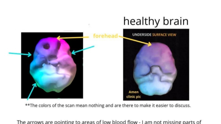 Hello, I'm Maxo. I have Huntington's Disease. This GoFundMe is to help with my tumor removal. Before they found tumors on my brain, this picture is an example of my brain with the tumors and the Huntington's. Both are in my head. Where you see the chunks or the divots are where the tumors are.