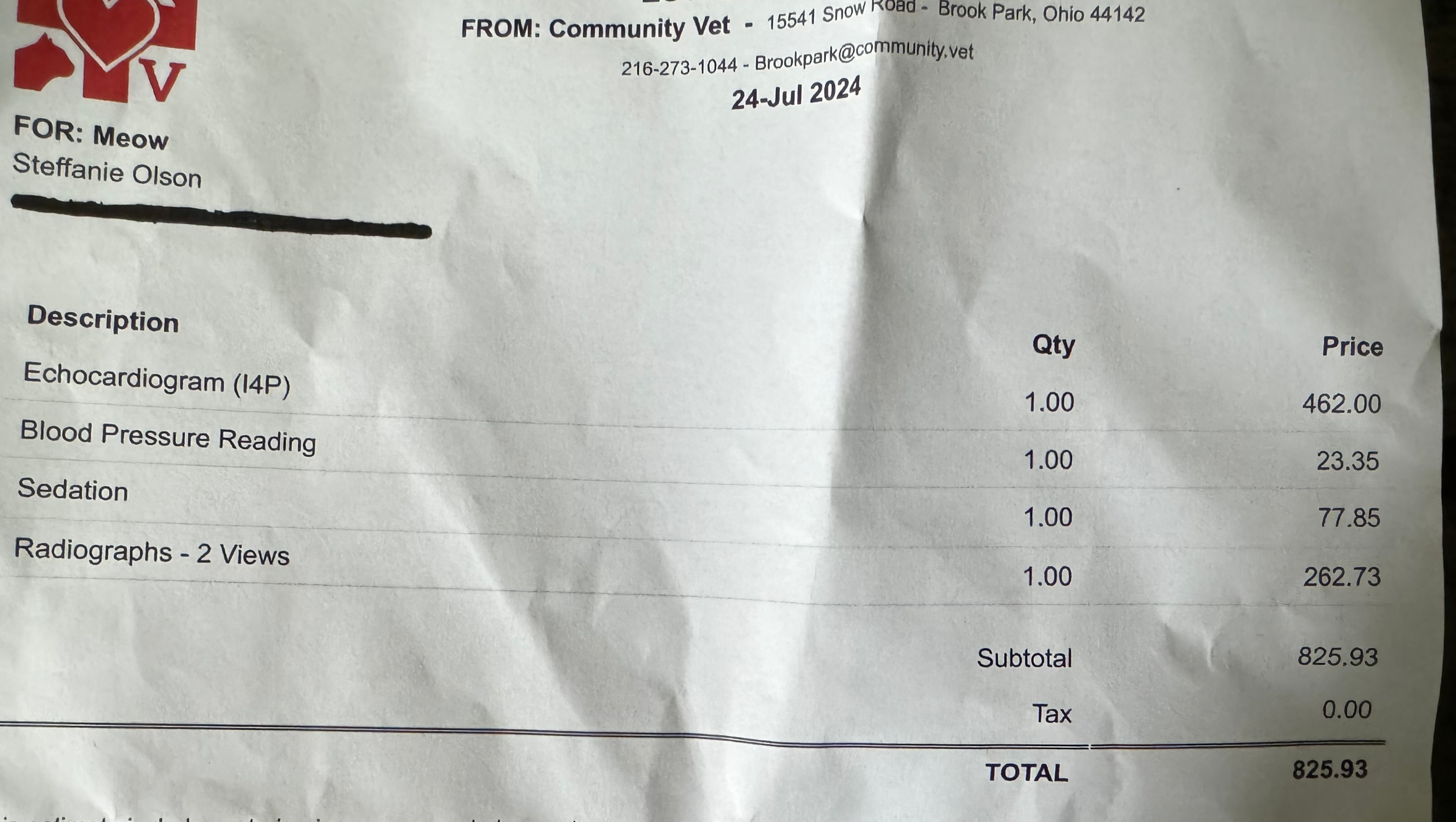 That leads us back to the morning of the 23rd. I had just woken up to my phone ringing and saw it was the vet clinic calling. They had heard back from the radiologist and unfortunately it was the news I was very much dreading: my cat was showing signs of heart failure, with a bit of an enlarged heart and fluid building up. "Devastating" does not even begin to express how I felt- my best friend and the love of my life was potentially facing the end of her life and I sure as hell was not ready to handle this. Our vet, Dr. Nicki, was willing to squeeze us in and see us the next day to attempt diuretic therapy to try and flush some of the fluid that was stressing her organs. I am very happy to say that Meow responded very well to this and is currently SO much more comfortable, but this is only a band-aid and does not solve the issue we are now faced with.