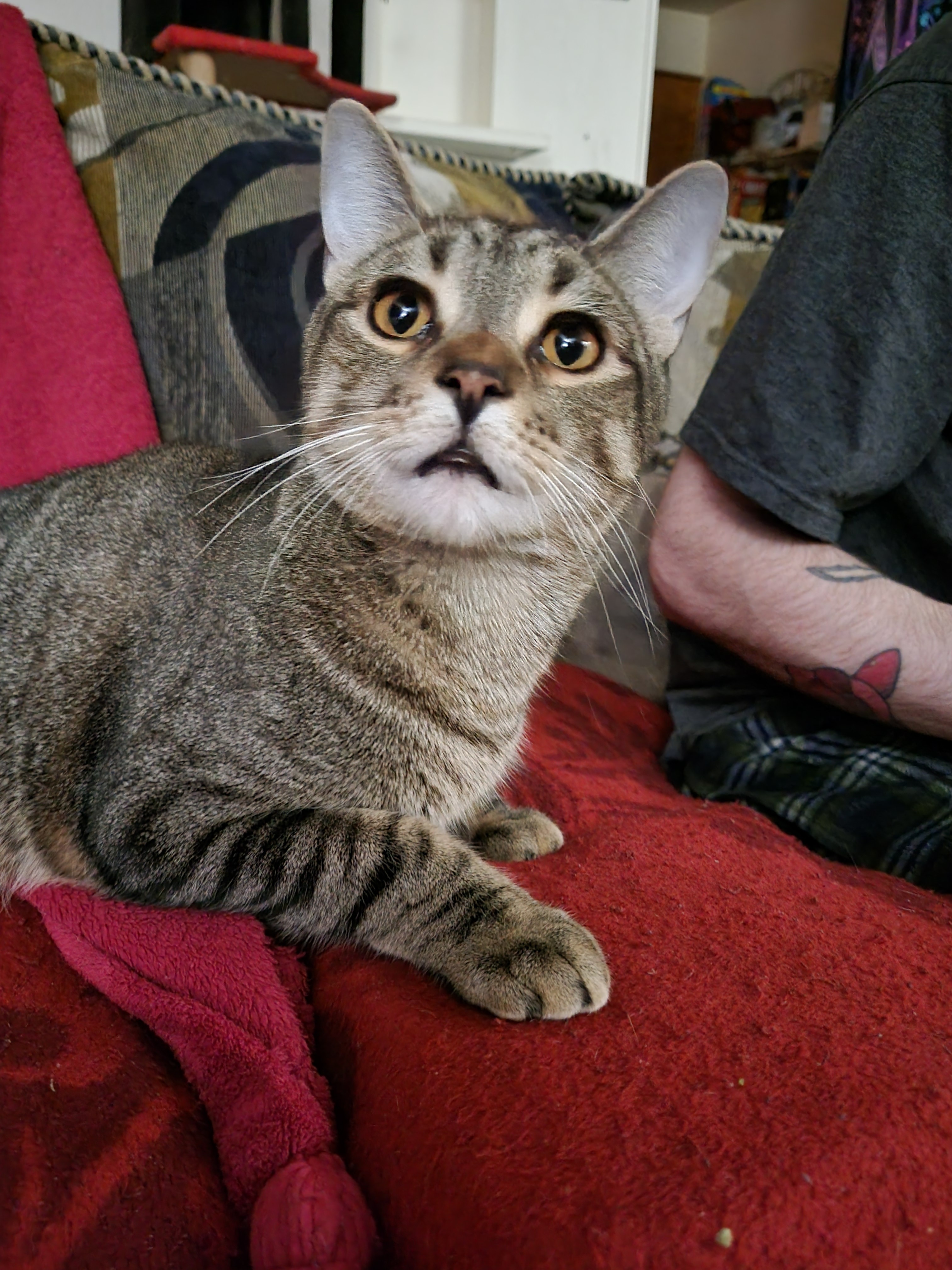 After 3-4 weeks, Mephisto was still limping in the same leg, barely putting any weight on it, and primarily balancing all his weight onto his right leg when standing and he had developed a popping in his back left hip. I decided he needed a second look and back to the vet we went. The vet felt the popping during this exam and we did xrays. Thats when we got the new diagnosis. Mephisto is experiencing Femoral Head Necrosis. Basically the ball end of his femur, where it goes into the hip socket is dead due to lack of blood flow and it had fractured. This is most likely due to the injury from his knee causing him to use the leg less. To fix this, my vet suggested a Femoral Head Osteotomy. Basically they will remove the top of his femur, clean up whatever dead tissue is there from the Necrosis, and then sew his muscle back together. The muscle will keep his leg in place while his body forms a false soft tissue joint to replace the one that has been taken out. From all the research ive done, this is a fairly common procedure for young cats but will be quite the healing process for him.