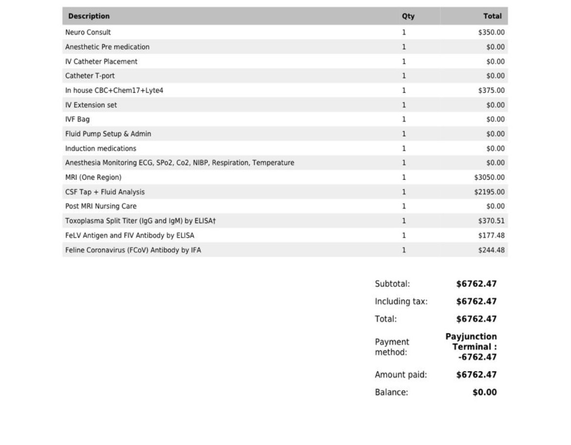 I moved forward with the MRI because she’s my baby and she’s everything to me. The bill came out over $6,762.47 Just to figure out what’s going on.