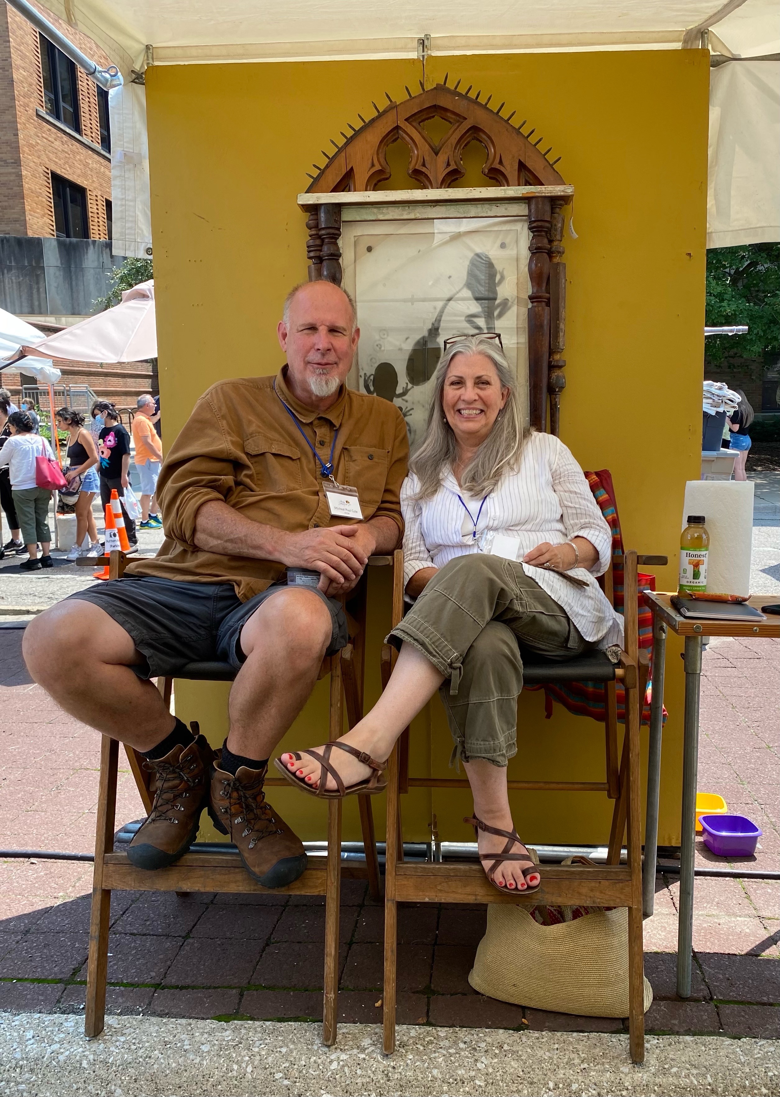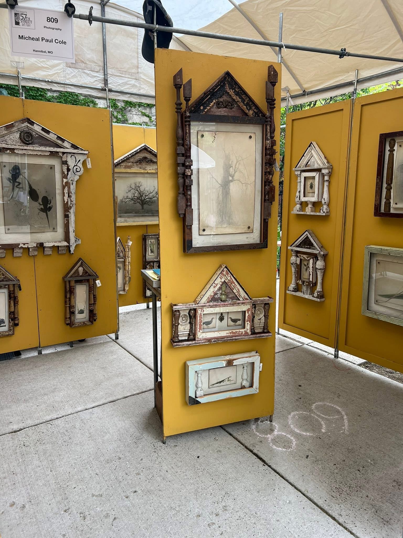 We spend months making the work, mostly alone, pouring time and money into something no one has seen yet. Then we apply for shows and hope we get in—and if we do, we load the van and drive hours (sometimes days) into the unknown. We roll into load-in with that familiar mix of adrenaline and dread, build a small gallery outdoors in whatever weather the universe decides to serve, and hope everything lines up: the crowd, our people, the sales. We stand on asphalt for long days, juggling conversations, sales, and basic human needs—like eating, sitting, and remembering water exists—then we break it all down, pack it all back up, drive home, and start again.