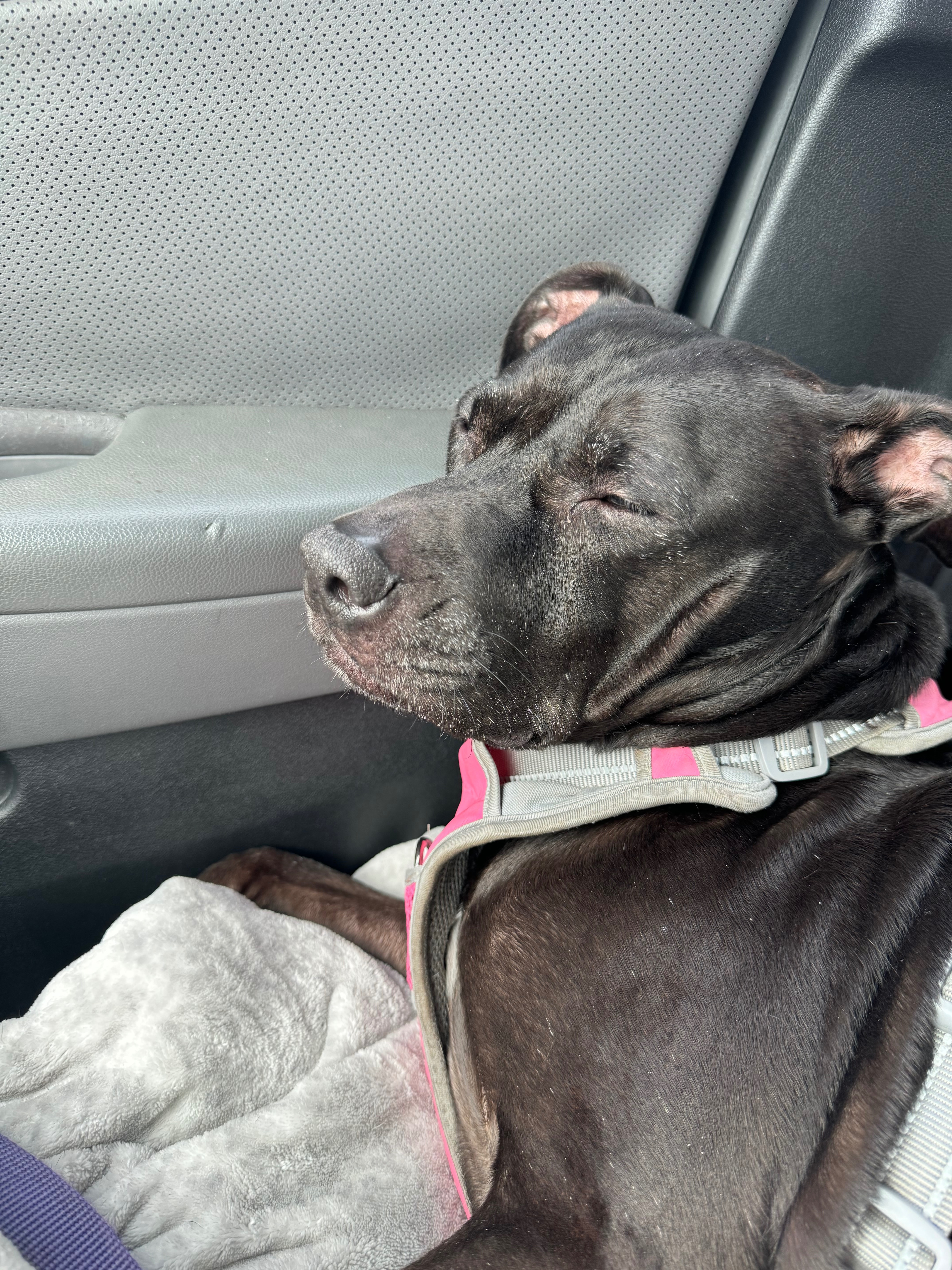 In November of this year, we noticed something wasn’t right. Midnight developed a hematoma in her ear — a painful swelling that happens when blood and fluid collect between the layers of the ear. In simple terms, it feels tight, heavy, sore, and uncomfortable, making it hard for a dog to rest, play, or be themselves. If left untreated, it can cause permanent ear damage, chronic pain, or infection.