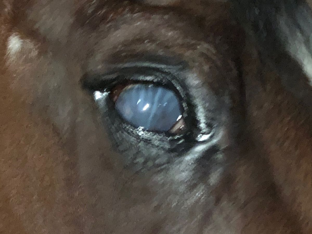 This is Junior Mif, aka Mif, Miffins, un-Miffable. She has fought a good fight with chronic uveitis in her right eye since October 2022. This past Monday, on August 26th, she went blind in that eye. It is now very swollen, tearing, and painful. Our veterinarian has made the referral and recommendation that it is time to remove the eye and all of its discomforts with surgery at Mid Atlantic Equine Medical Center.