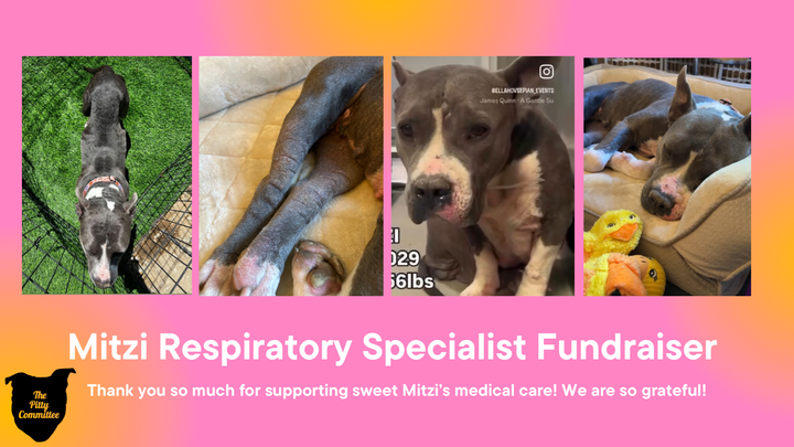 Sweetheart Mitzi was rescued from Lancaster Animal Shelter in Los Angeles, CA in horrific condition. Besides being skin and bones, Mitzi has pneumonia, double ear infections and a whole body skin infection. She is currently on antibiotics, and doing daily nebulizer + steam baths. Mitzi saw our regular vet last Saturday and although the appointment went well, we still do not see an amazing improvement in Mitzi's overall condition.