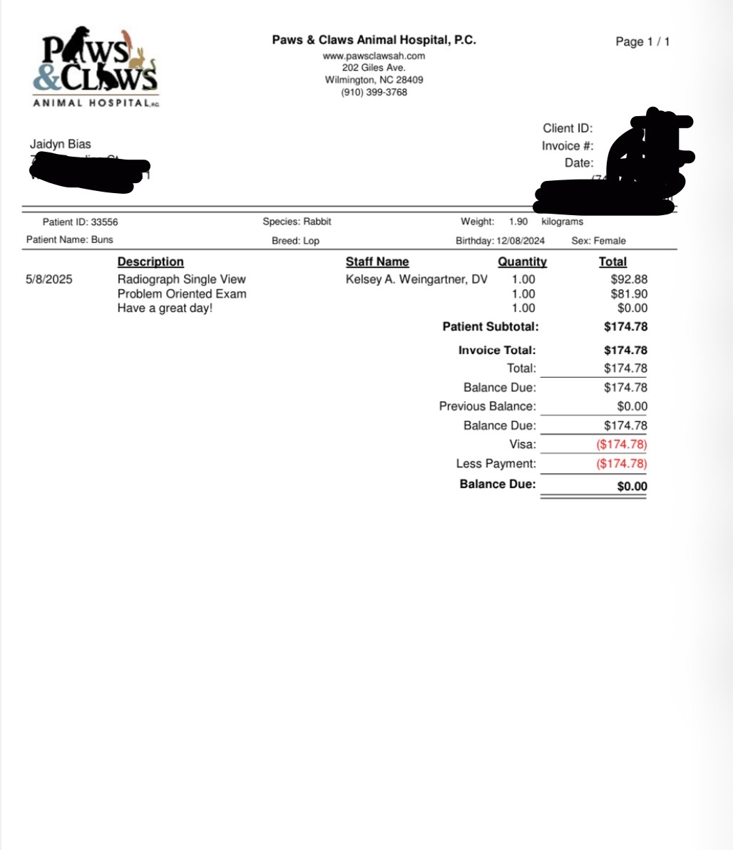 Vet bill : $175