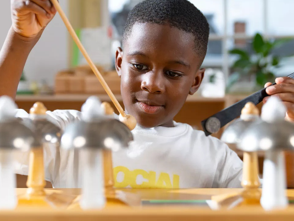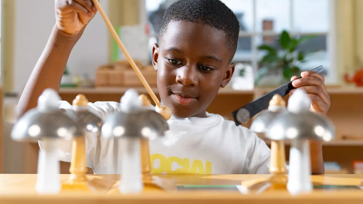 Through observation, Dr. Maria Montessori came to awareness of the importance music has in the Children's House. To give the children opportunities for exploration and self-expression through music, she called on the help of Anna Maccheroni to develop a material that was attractive, scientifically precise, and able to be manipulated. Thus, the Musical Bells were created.