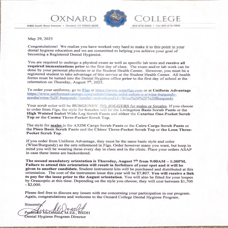 I’m starting the BS in Dental Hygiene program at Oxnard College this Fall, and I’ve run into a financial barrier I wasn’t expecting.