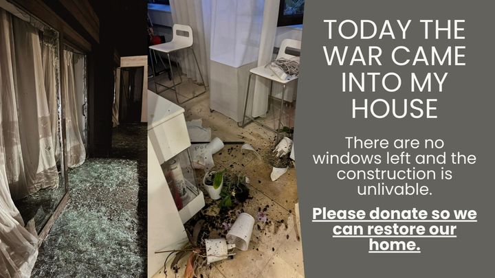 Today, a rocket exploded near my house in Ukraine. There are no windows left at our house and the structure itself has been compromised. Our once safe and loving home is now unlivable. During the attack, my mom was trying to escape her room when the door got stuck. She couldn't exit, and the fear and panic she experienced in those moments are indescribable. Thankfully, she is safe now, but the house is unlivable.