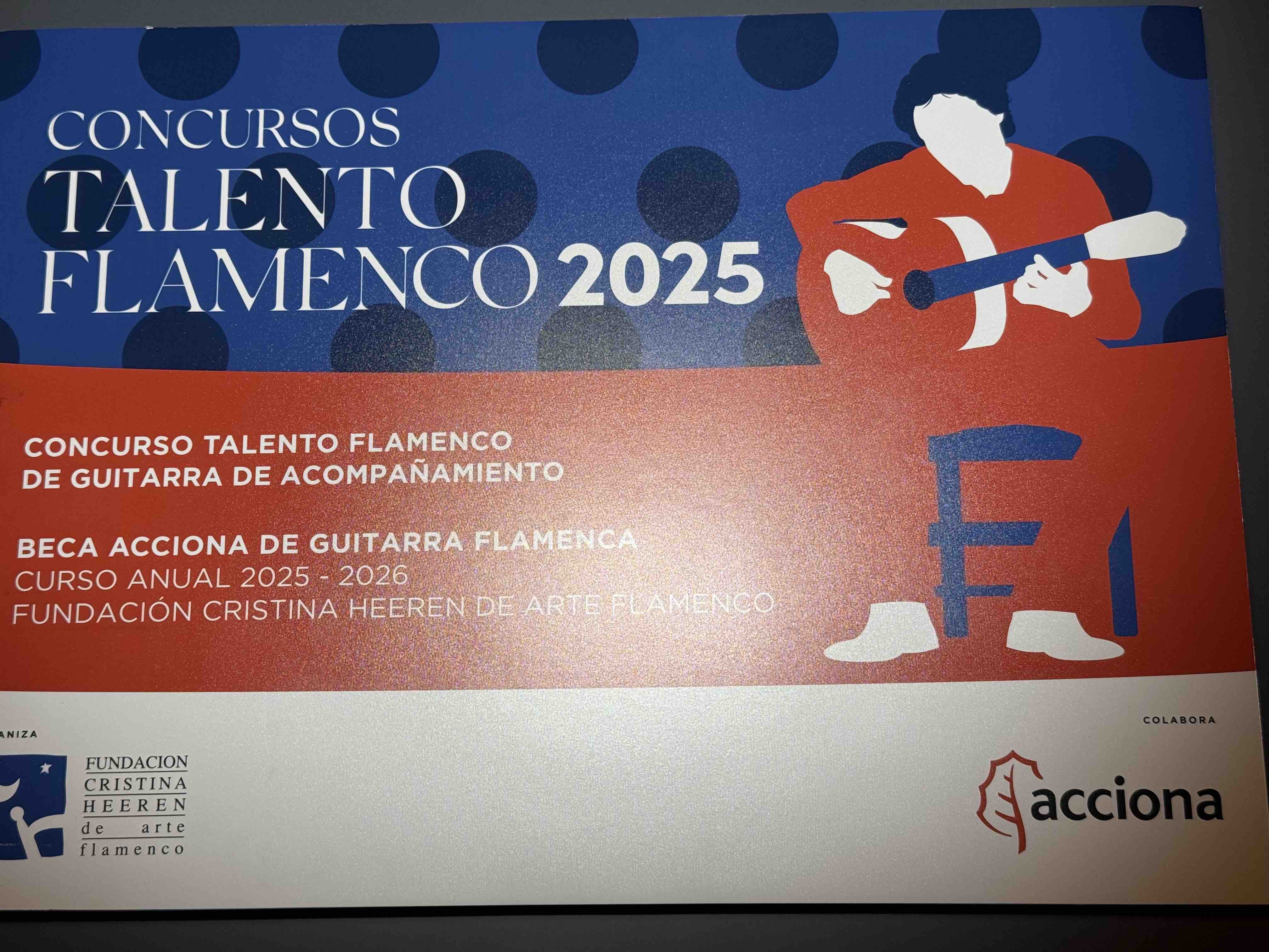 In July 2025, I won a flamenco guitar competition in Sevilla and was awarded a one year scholarship to study in Spain.