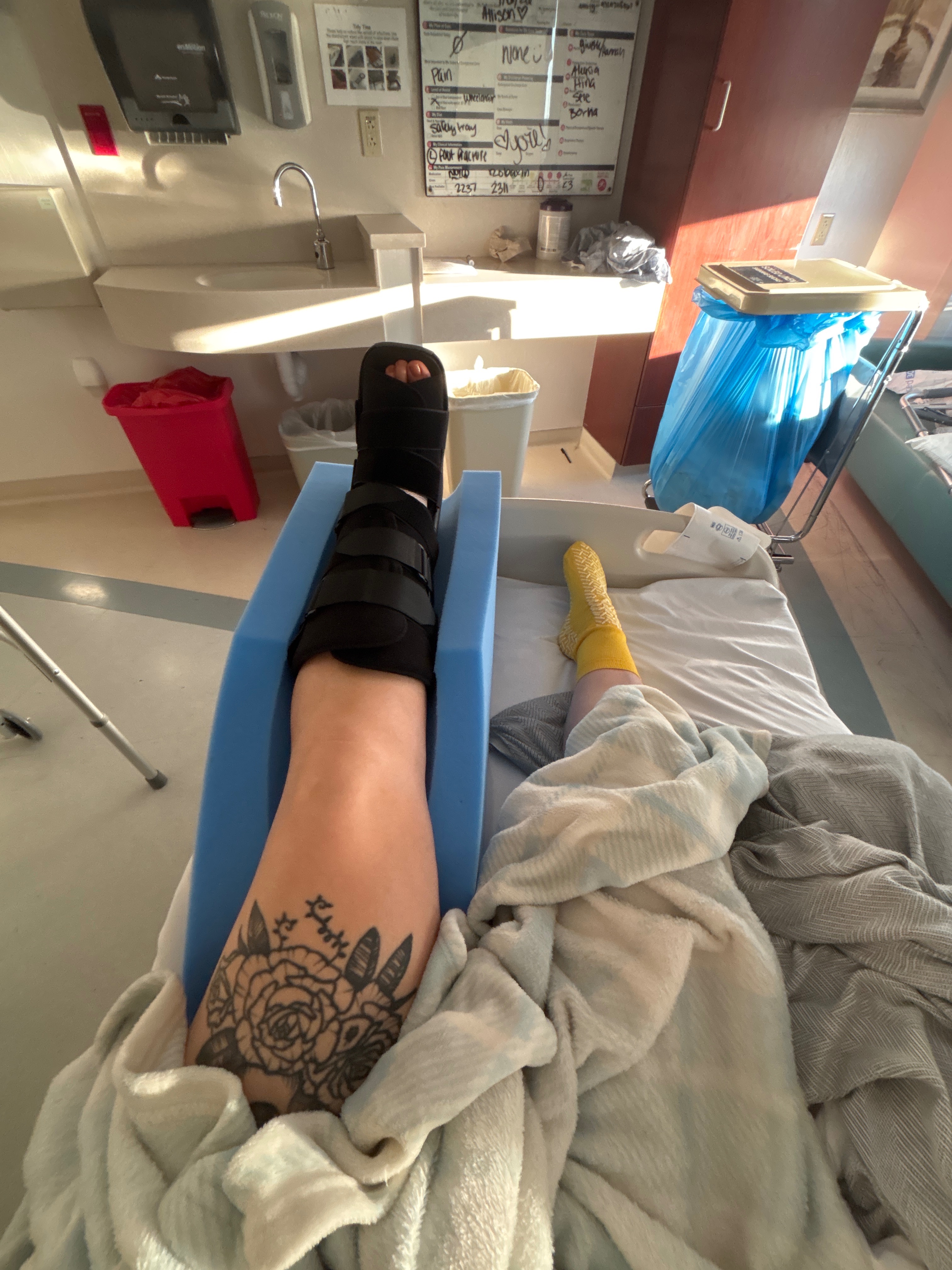 I broke my ankle in three places, with nerve and tendon damage, and had to have surgery. The injury has left me unable to put any weight on my foot, and I'll be in the hospital for six days. My doctors expect that I will be out of work for at least 6-8 weeks while I recover, which is a huge challenge for me since I normally juggle two jobs to make ends meet.