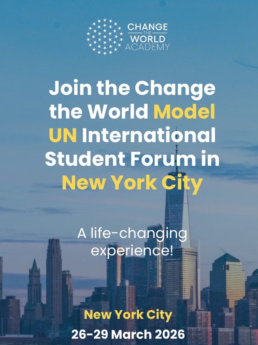 The Change the World Academy is an international program connected with the United Nations that brings together students from all over the world to learn about diplomacy, global issues and leadership through Model UN conferences. It’s a space where young people work together to create real ideas for a better future.