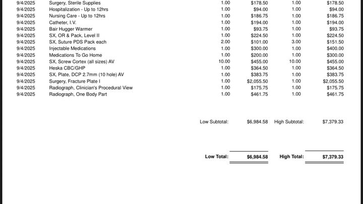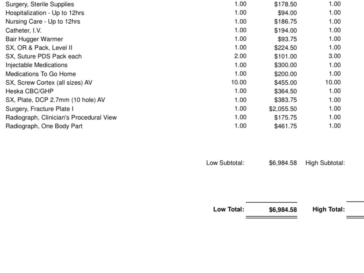 She needs surgery to repair which costs $7000 in addition to what we already paid at the vet. I have been out of work for a month and a half having my daughter, and with having to pay that hospital bill, this is a very expensive accident we did not anticipate. Any help is appreciated.