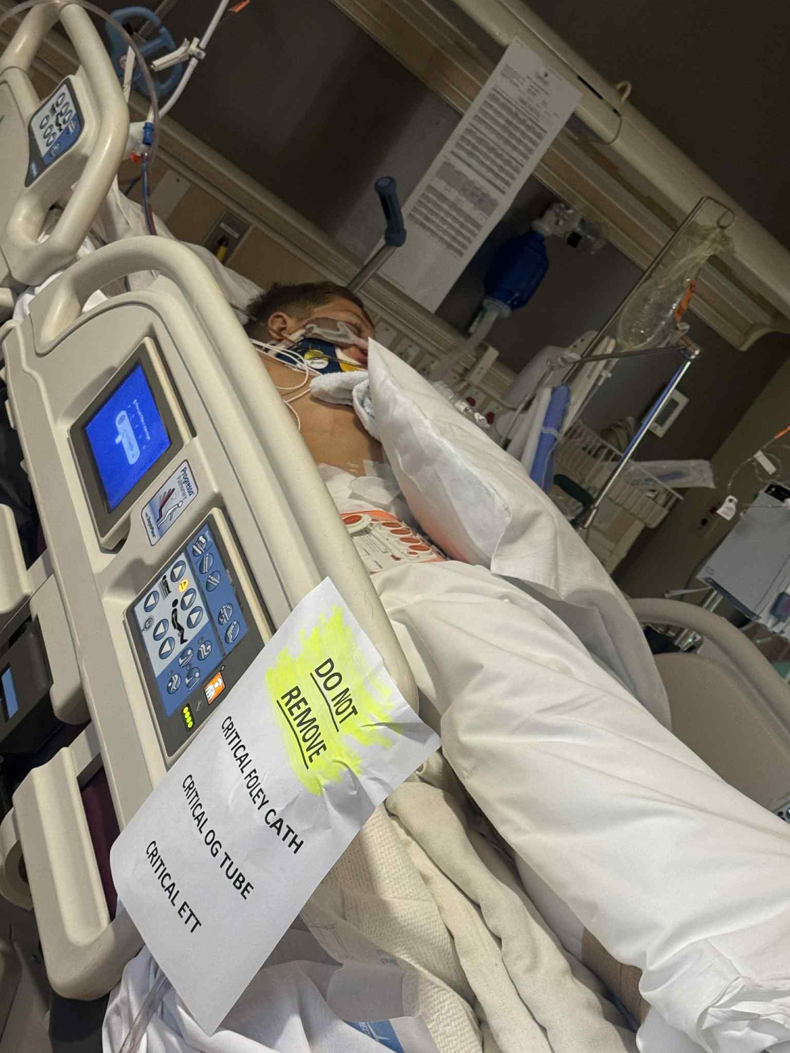 “Thank you everyone for your continued prayers for Nathan & Grayson. At this time Nathan is in stable condition and we’re not anticipating any surgery at this time. Grayson is in critical condition and has two broken legs two broken arms, a broken pelvis, a broken nose, and he had his urethra fixed in surgery last night and also had a bowel obstruction so he’s probably going to be in the hospital. We’re anticipating for quite a few months maybe six months he’s in really really bad shape. It’s hard for me to even speak about it. Please just keep them both in your continued prayers. I appreciate all of the support and everyone who has reached out to make sure we need anything but at this time I’m a little overwhelmed. Robbie and I both appreciate everyone and we will give more of an update at a later time. Right now all we can do is thank God our babies are alive.”