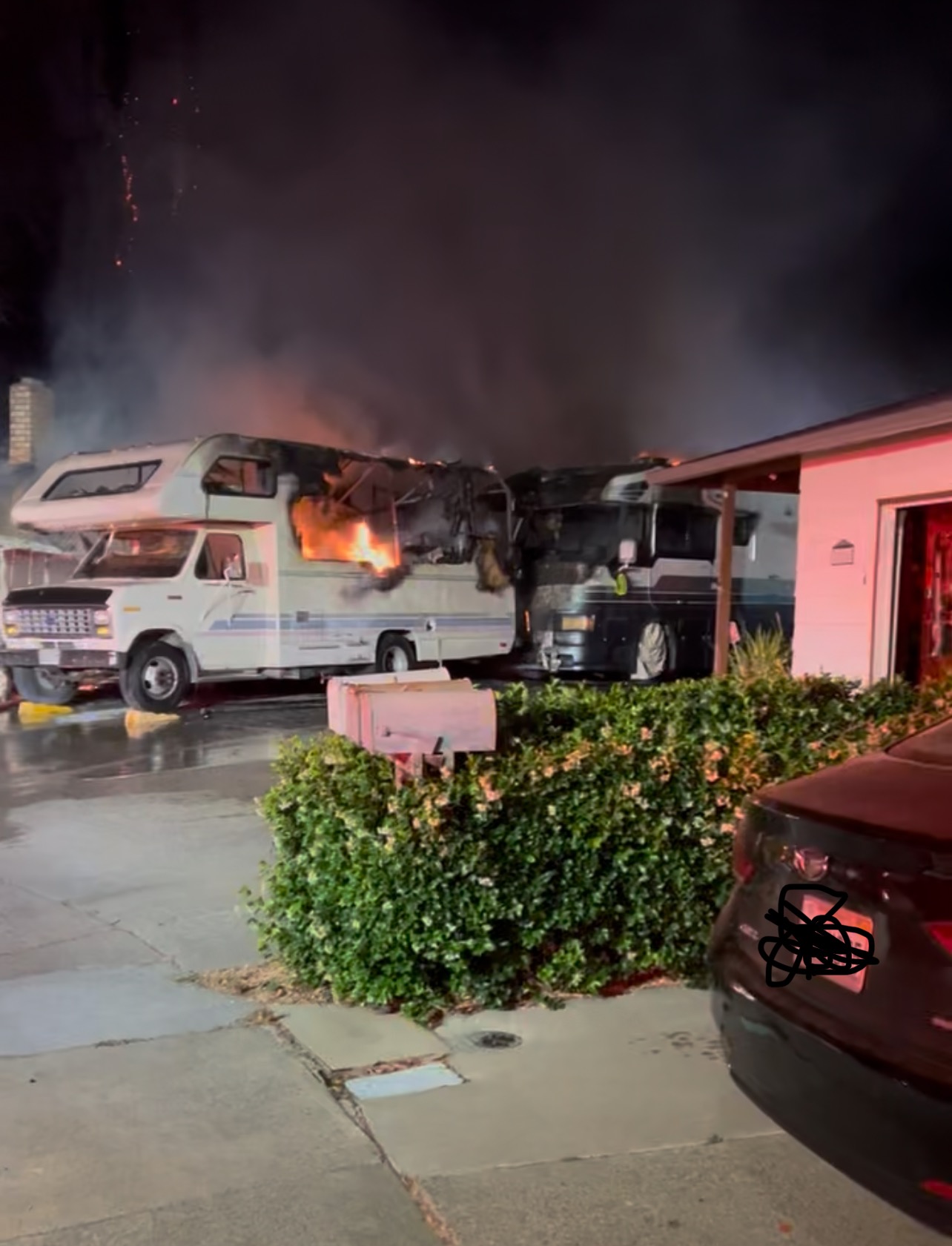 We are so appreciative to the Fairfield Fire Department for getting there with enough time to contain the spreading flames. I don't remember what time we were in the clear to go see what was going on, but when my cousin texted me they went back into their house, I assumed that meant we could go back into their RV. Eek.