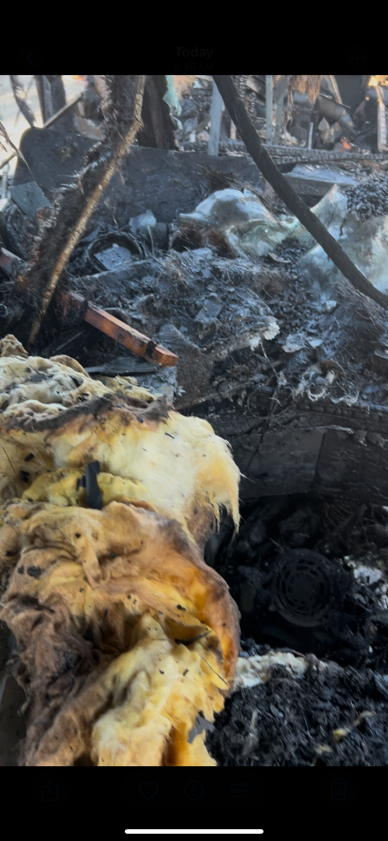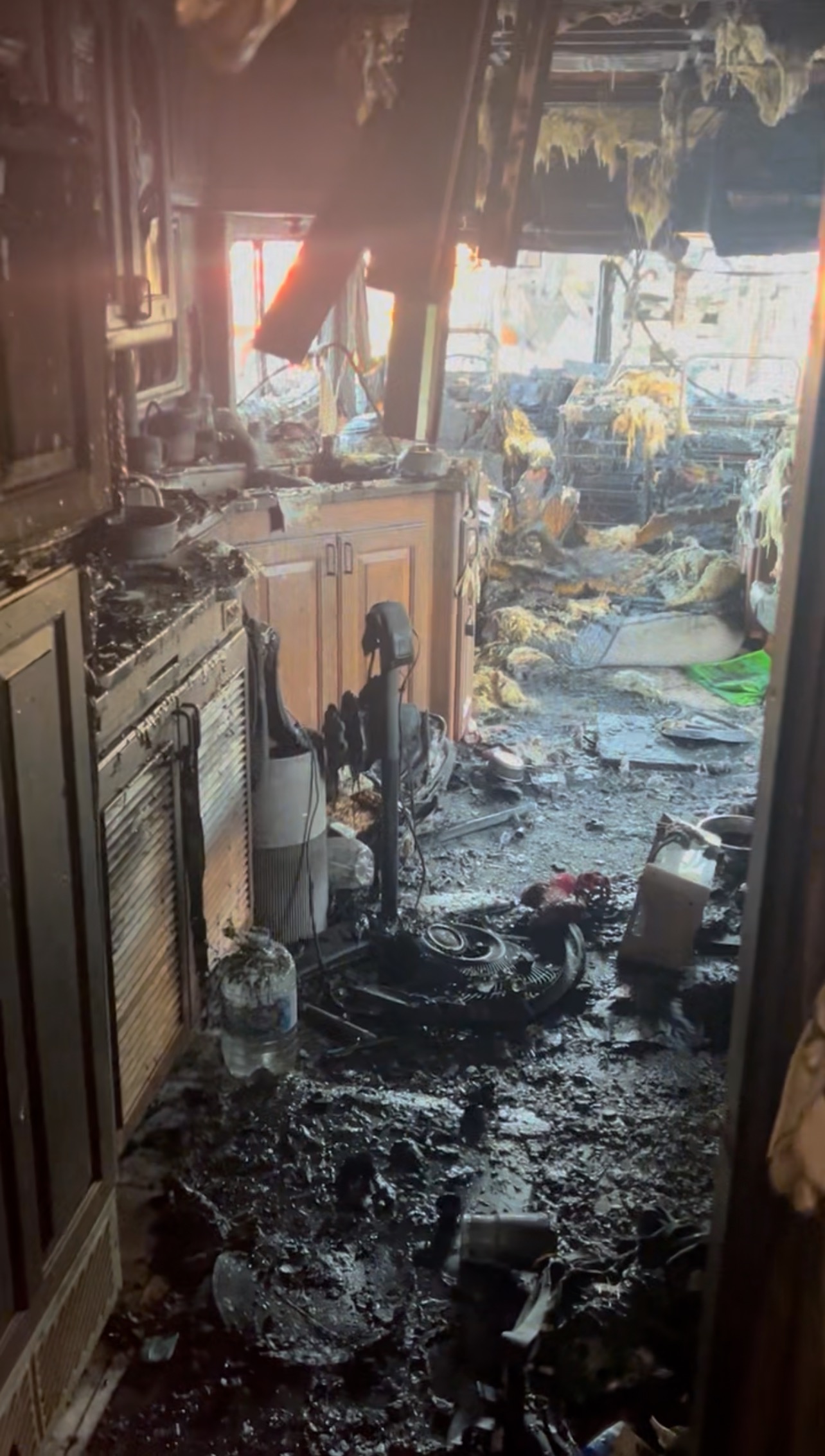 I asked the police officer if we could go in and she didn't know people were staying there, then told us both RVs were ruined. We spoke to the fire marshall and he eventually let Michael go inside to retrieve what we could. Pretty much all our personal belongings were stored in my dad's RV. All our clothes, electronics, work things, business things, and sports memorabilia were turned to ash or melted into a glob.