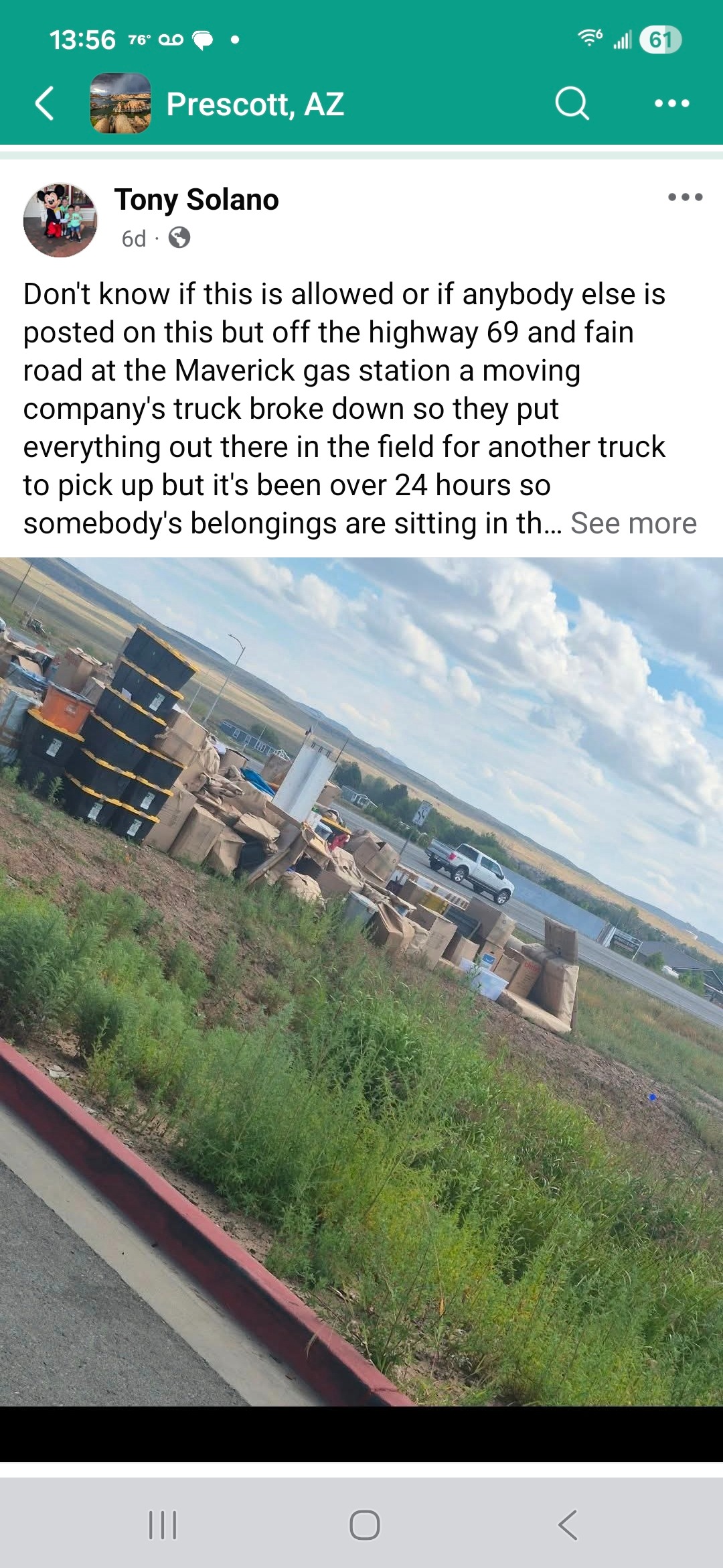 Due to the government reduction, we have retired and started our move from Hawaii to Florida. We contracted a moving company to deliver our household goods and they picked them up in early July. Due to delays within the company the goods did not reach their storage facility until sometime in September. They then hired two people to make the final delivery from their warehouse to Florida. The two people selected to deliver the goods, rented a truck from Penske and picked up the goods. They then drove to Prescott AZ, where they flipped the vehicle. They pretended to be moving company employees informed the police that another team was coming to recover the goods. They emptied the truck on the side of the road and a tow truck removed the flipped vehicle. As soon as the police left the scene, they fled, leaving everything we own on the side of the road. A passerby noticed the stuff, since it was on a busy highway and posted a local online ad that there was free stuff on the side of the road inviting everyone to come and get some. After 5 days of hundreds of people taking all of our furniture, valuables, clothes, photos, literally everything we had ever accumulated, a police officer inspecting the scene found some documentation with our names on it and called us. After 5 days of picking, we found out what had happened. After 7 days, the moving company is still telling us the stuff is in route and we need to pay them ASAP or they will start adding charges. Any help provided would be greatly appreciated as we have to replace everything and find a way to get by without the items that can never be replaced. we are beyond devastated. This is like a death of so many memories, things attached to it and more....