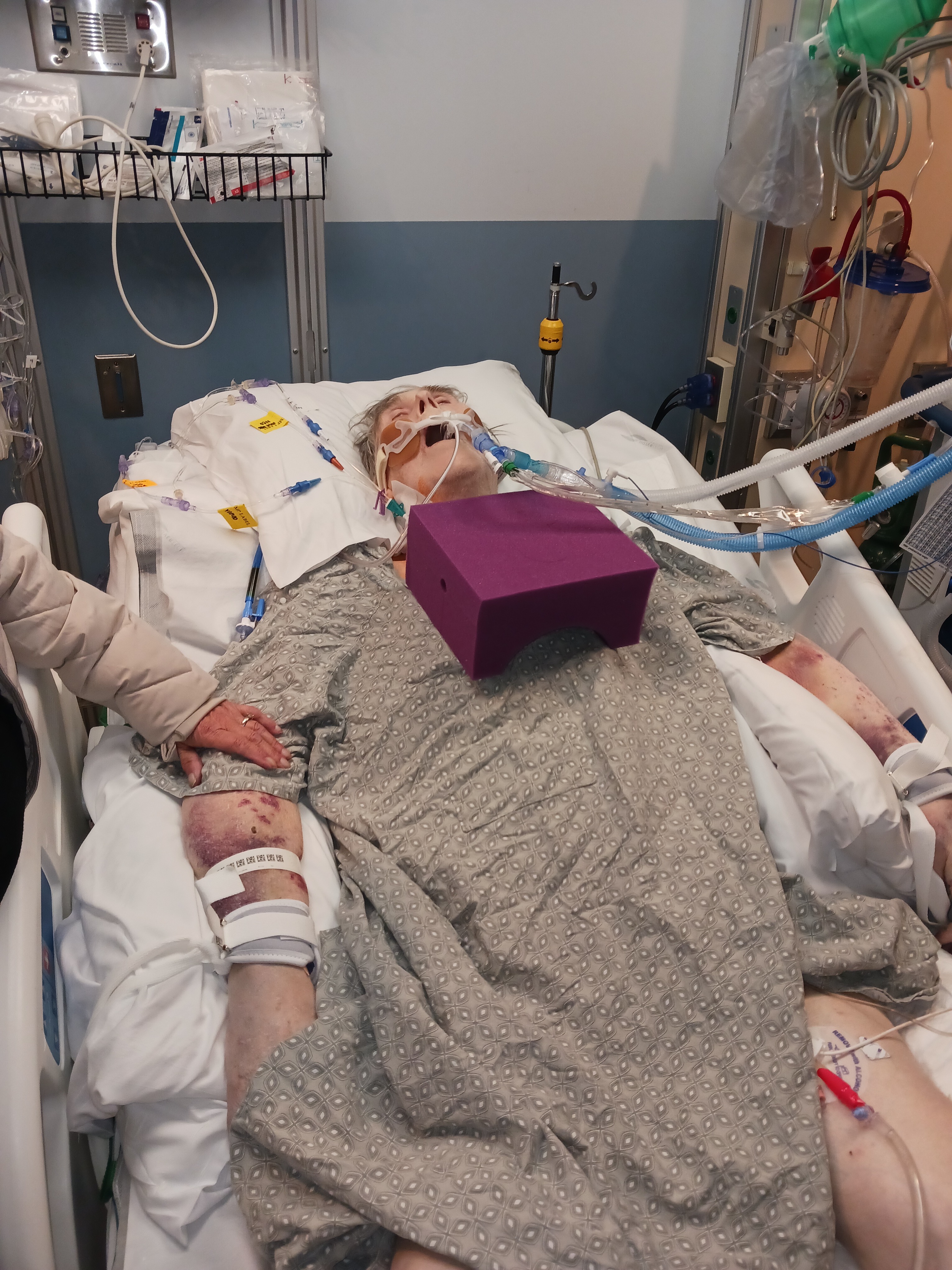 I would like to tell you what happened to him while under the care of Holyoke Medical Center. He was in the ICU being cared for a UTI and pneumonia. The doctor informed me that a PICC line in the artery in his leg got plugged, so the doctor had to change it. While doing so, they tore the artery. Instead of doing the right thing and sending him immediately to surgery, she tried to stop the bleeding to cover up the malpractice and save herself from getting in trouble. So, my dad sat there with his artery torn for 15 hours before the doctor sent him for surgery. The result of her actions left his brain permanently damaged. His lungs don't function anymore, and he is in a catatonic state.