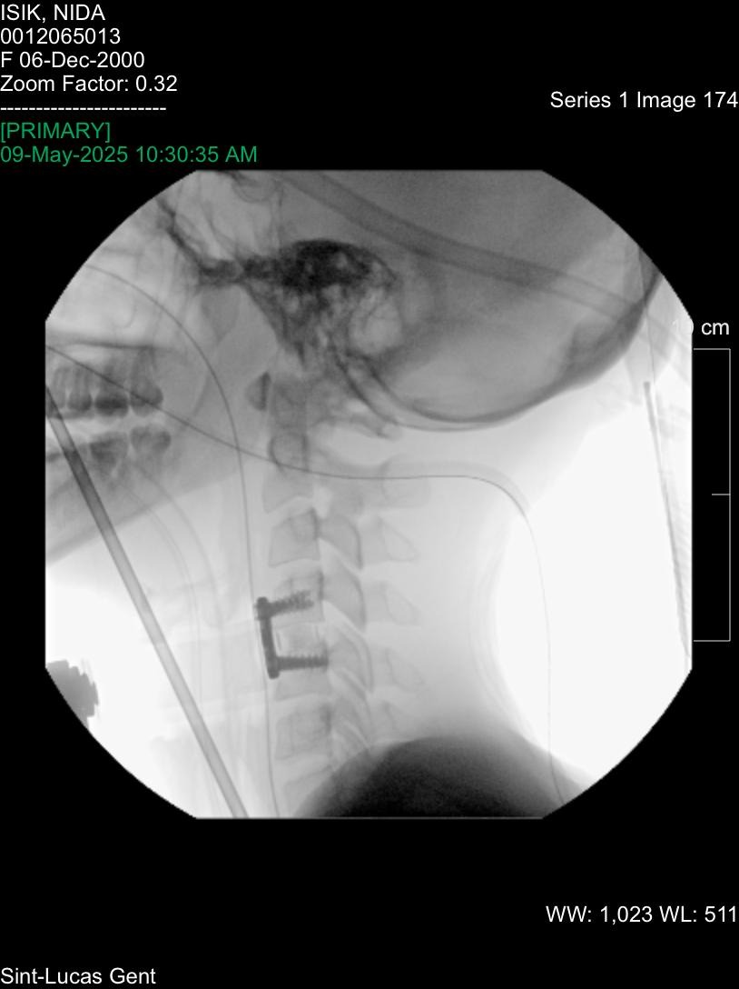 Future surgery on the C5-C6 vertebrae, which had to be left unoperated during the initial procedure due to her young age 24 and associated risks