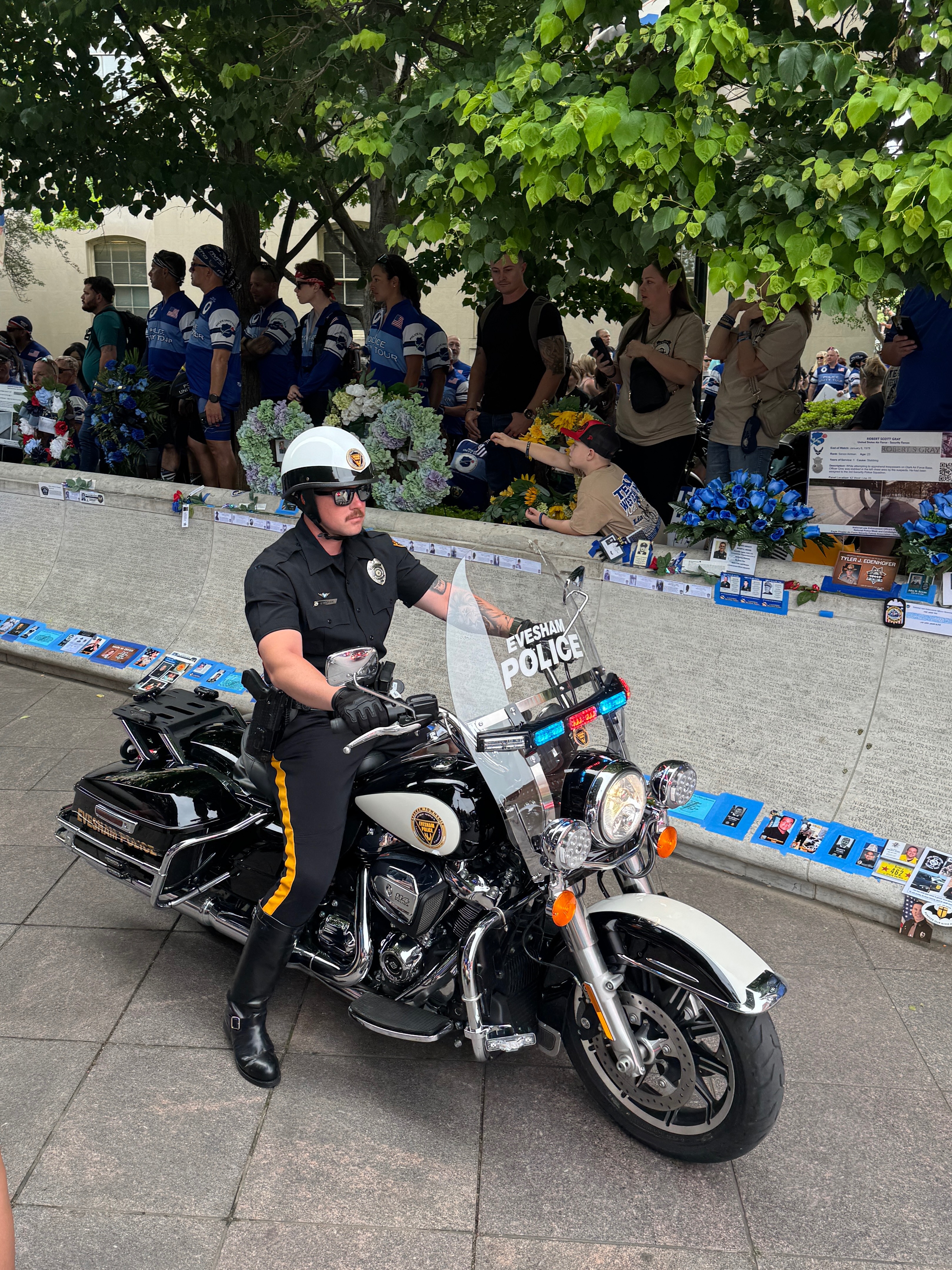 I am once again participating in the 2026 Police Unity Tour as a member of the motorcade responsible for escorting the bicycle riders safely to Washington, DC. In August of 2024, I had the privilege of attending the Philadelphia Highway Patrol Police Motorcycle Wheel School to receive my Motor Unit certification in order to be able to operate a motorcycle in a law enforcement role. Following my graduation from the school, I had the honor of becoming one of four of the first officers in Evesham Police history to become Motor Unit officers.