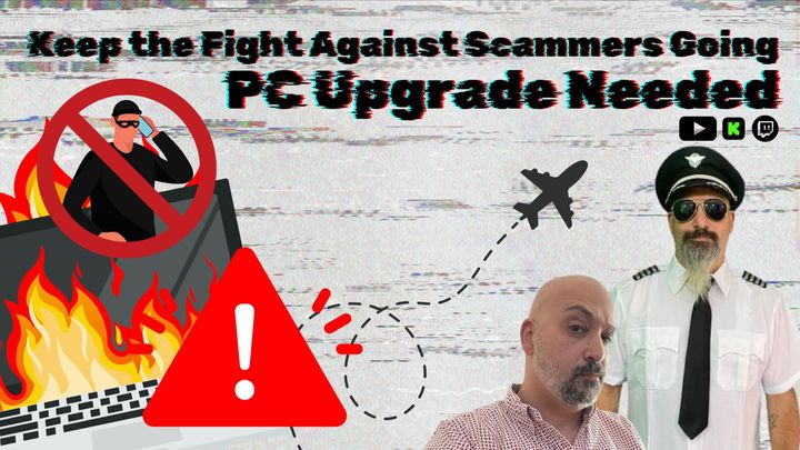 But here's the thing: the equipment he uses to keep exposing scammers is starting to struggle. His PC has been through a lot of action, from flying all over the world in Microsoft Flight Simulator (even with that solid 6/10 landing!) to keeping his streams smooth and his scambaiting on point. As his community grows and the scams get more intense, he needs a more powerful rig to keep up with the work he does.