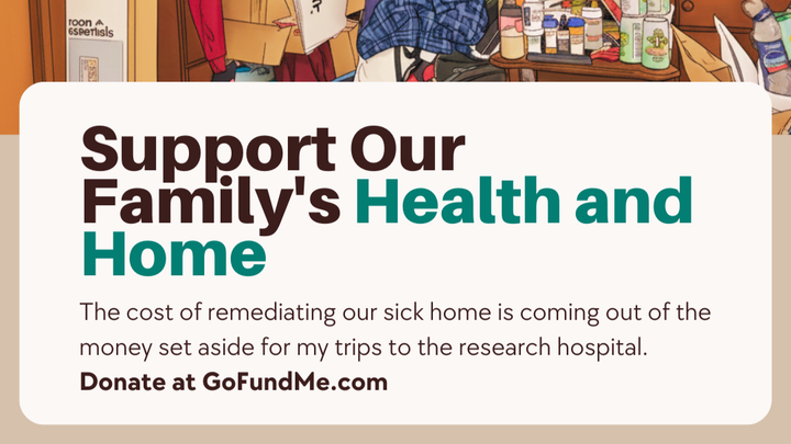 We technically have the money to pay for the deep cleaning we need, but that money is coming out of my disability backpay that I need to pay for the out-of-pocket costs to go see the autonomic specialist at the NYU Langone Dysautonomia Clinic in New York City, which involves $400 in train fare for my husband and me each trip as well as $900/hour for office visits. The autonomic specialist can only do so much for me if the house I'm living in is actively making me sicker.