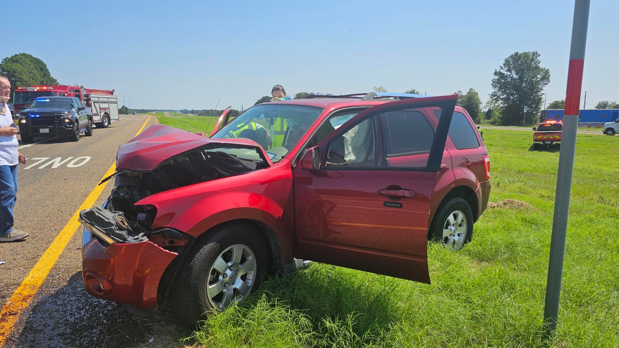 My wife Diane and I were involved in a serious car accident on Tuesday, September 9, 2025. The other vehicle driven by an undocumented,unlicensed, uninsured male ran a stop sign at CR 2938 going 35/40 mph crossing Hwy 175, and we hit at 70 mph (miles per hour). My wife's neck C2 vertebrae and back L1 vertebrae were broken and she had a brain bleed. I have broken ribs and a broken sternum.and an abdominal hematoma. Diane spent 2/3 days in ICU after being careflighted to Baylor Dallas. I followed by ambulance. We were released on Septemer 16 after a week in the trauma unit. My wife is in a neck brace for three months trying to heal without surgery. She is also fighting cancer (stage4)Home health is coming weekly for Diane.