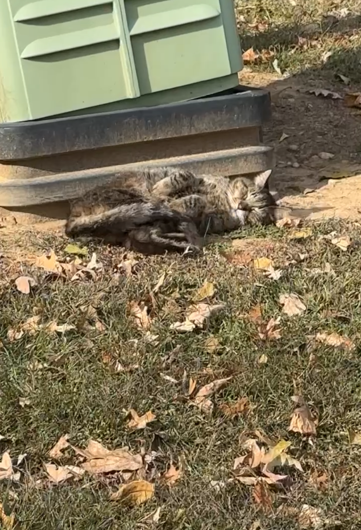 After months of gaining her trust, she soon became friendly, chatty and always hungry for food (lol). She knew I would be in our special spot with her food and treats everyday. However, this time, she stopped showing up. I was worried and scared and looked for her for months, “penny where are you” but there would be no response back…until very recently, I saw her hiding in a bush.. loafing herself tightly in the cold, with her eyes barely open…her fur looked unhealthy and matted, she looked extremely skinny.