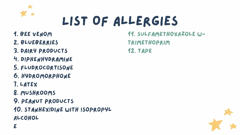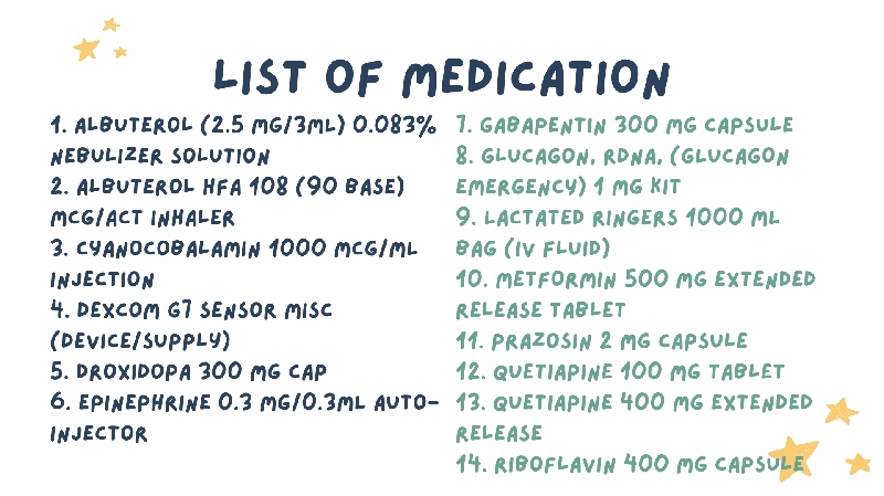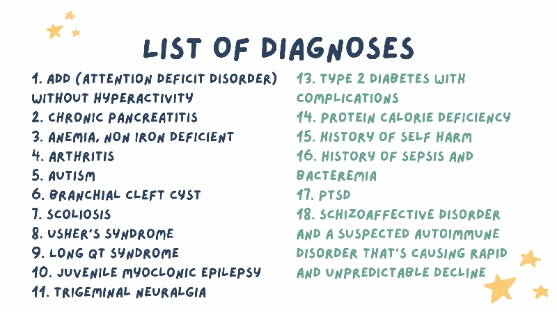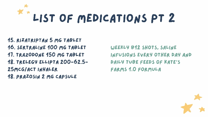 updated to give you a better picture, here are some graphics of my diagnoses, allergies, and medications, to give you a better idea on what you'll help support us with