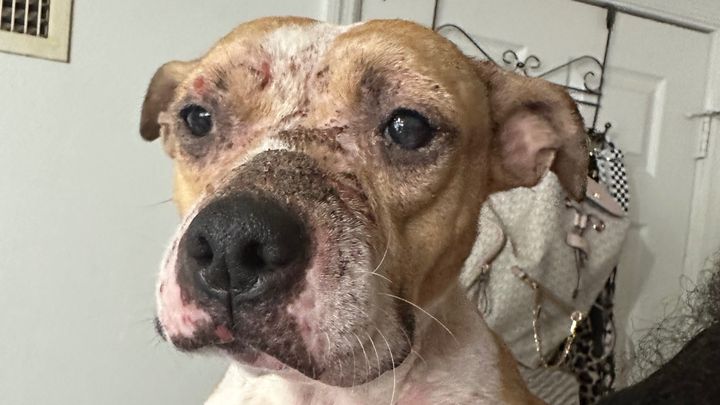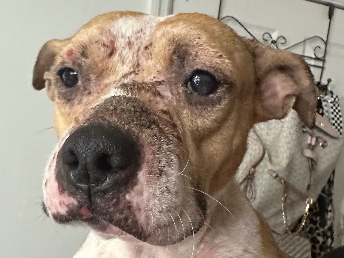 I noticed that Petal appeared injured, so I called her over and she came right to me, so loving and friendly. Petal has what appears to be burn marks all over her face, neck, back, and legs. She also has many large wounds and gashes all over her. She is partially blind due to whatever was thrown on her face.