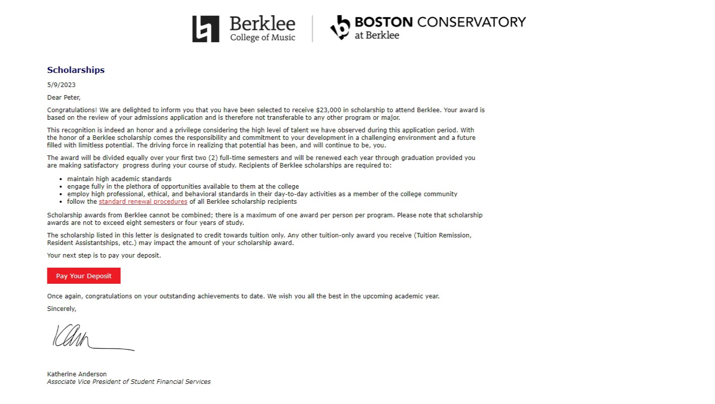 I will ensure to provide all donors with regular updates throughout my journey at Berklee College of Music.