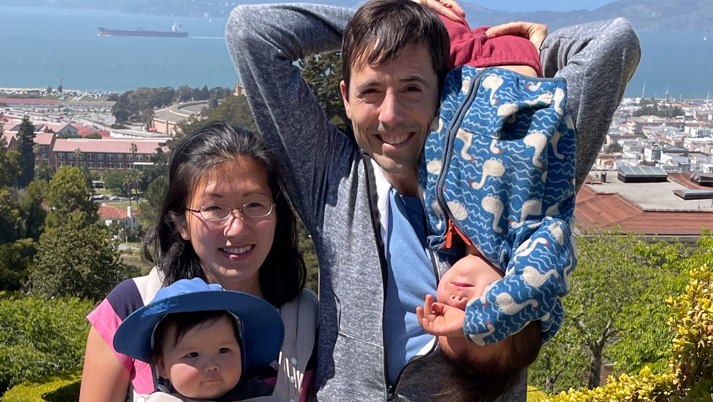 I want to share a few stories about how fantastic Philip's family is. Philip has a close, trusting, and joyful relationship with his wife, Jen. Philip is a very gifted endurance athlete, and Jen is less strong but up for a good adventure. Within weeks of when they started dating, Philip and Jen embarked on a ~24 hour tandem bicycle ride from Boston to the Canadian border. They were a perfect team. Whenever Jen got tired, she would stop pedaling and cross her legs over the top tube of the bike. To navigate, she would spread a paper map out across his back and call out directions. She also worked the music playlist for their small, portable bluetooth speaker and fed Philip bananas while he kept his hands on the bars.