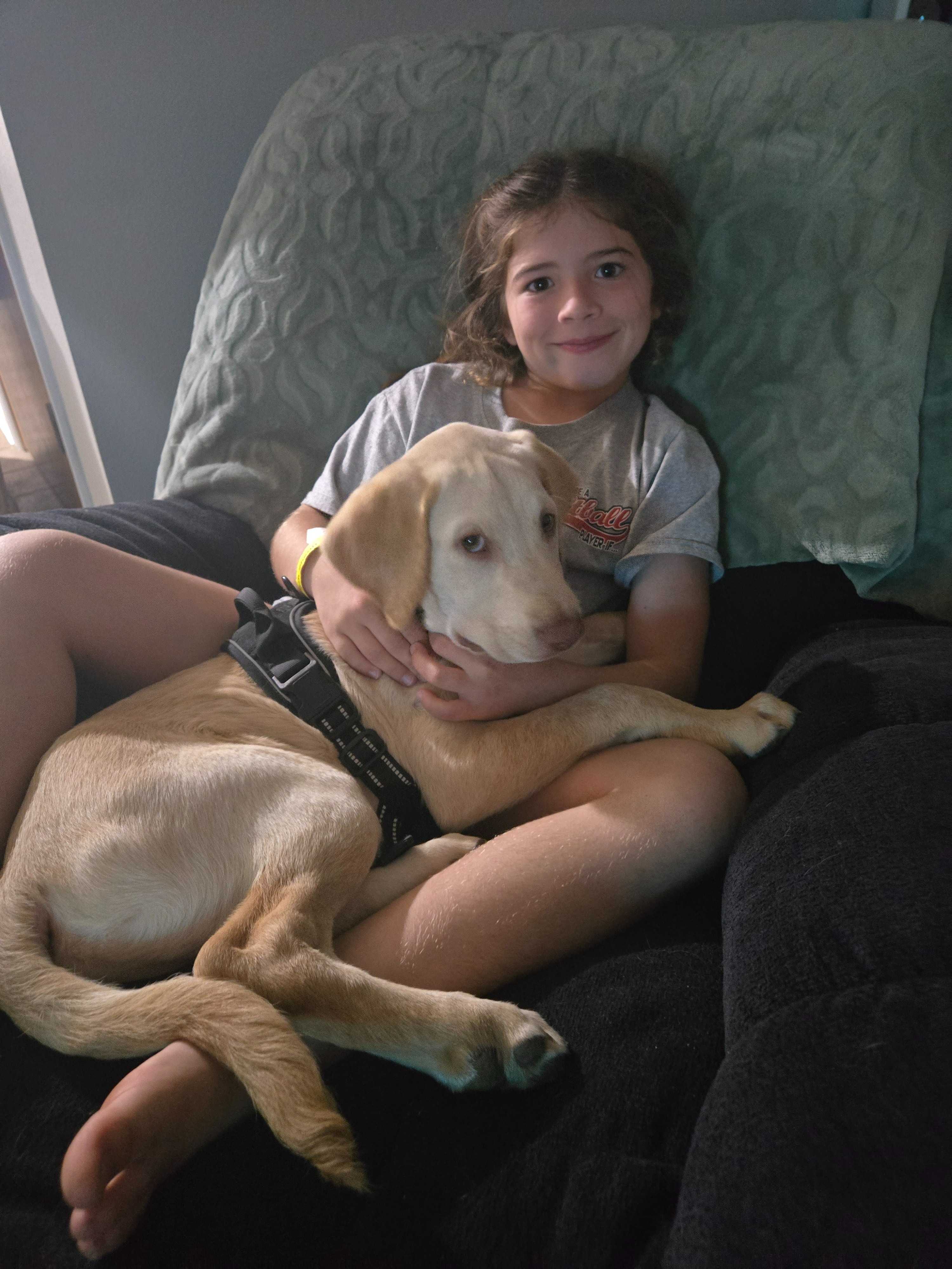 Through all of this, Piper has found incredible comfort and strength in Boomer. He instinctively helps calm her during sensory overload and anxiety. Their bond is unbreakable. But now that Boomer is growing, Piper—who is very petite for her age—can no longer physically manage him the way she could when he was a puppy.