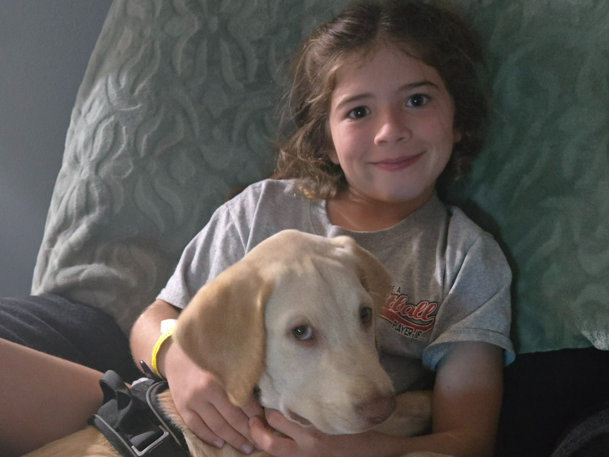 Piper was gifted a beautiful yellow Labrador named Boomer, with the hope that he could be trained as a therapy or service dog to support her through the many medical challenges she faces daily.