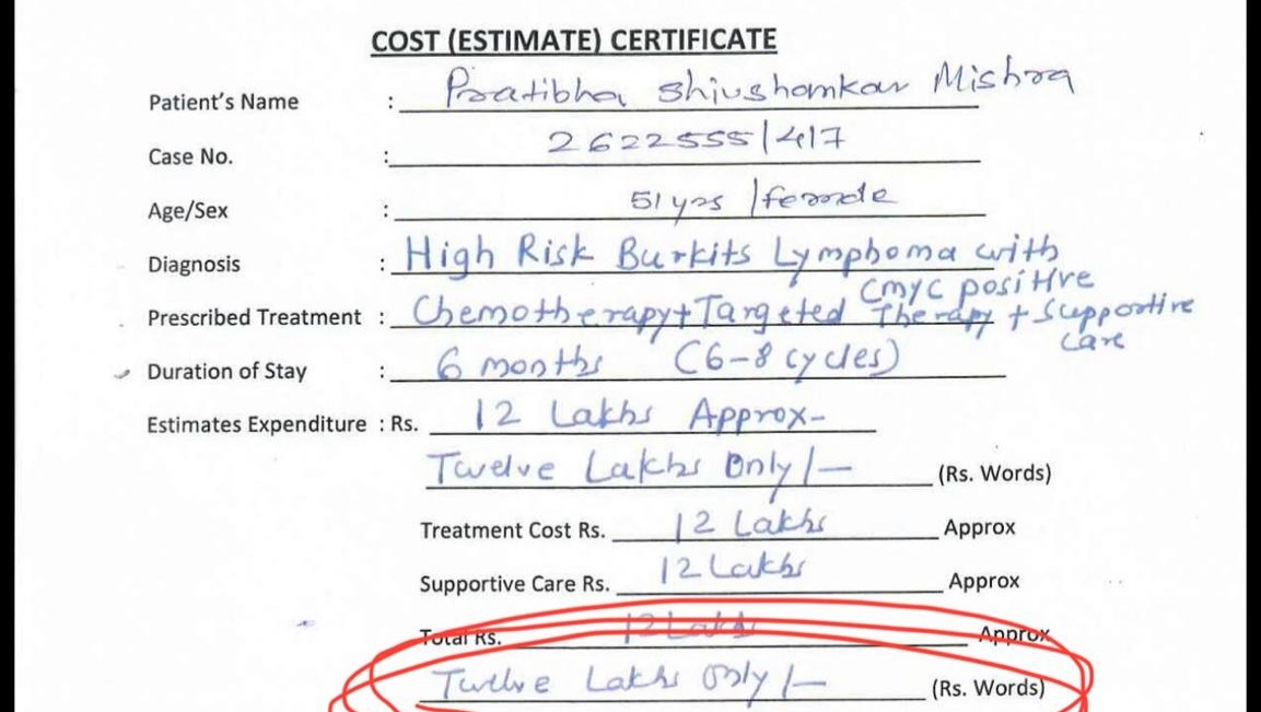 We are thankful to have made this discovery in the phases where we could act upon it. Per her oncologists, she will need at least 6 cycles of chemotherapy, which will cost around $15,000. This does not include the cost of medications, travel, hospital stay, further hospitalizations that may be required, additional chemotherapy cycles, and physical therapies.