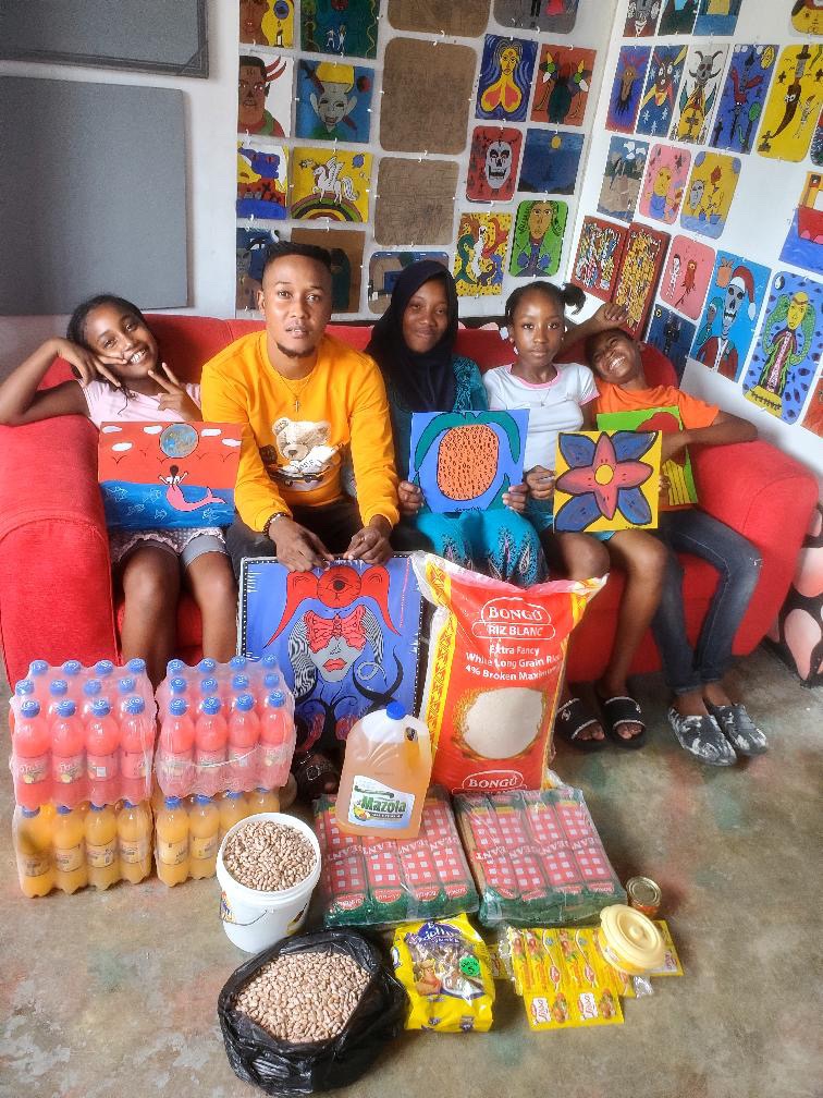 During this difficult time, we need your support. I would like to help the children at my art school fight hunger. Next month, I would like to distribute food kits to each child, including rice, peas, oil, corn, and other items so they can feed themselves at home.